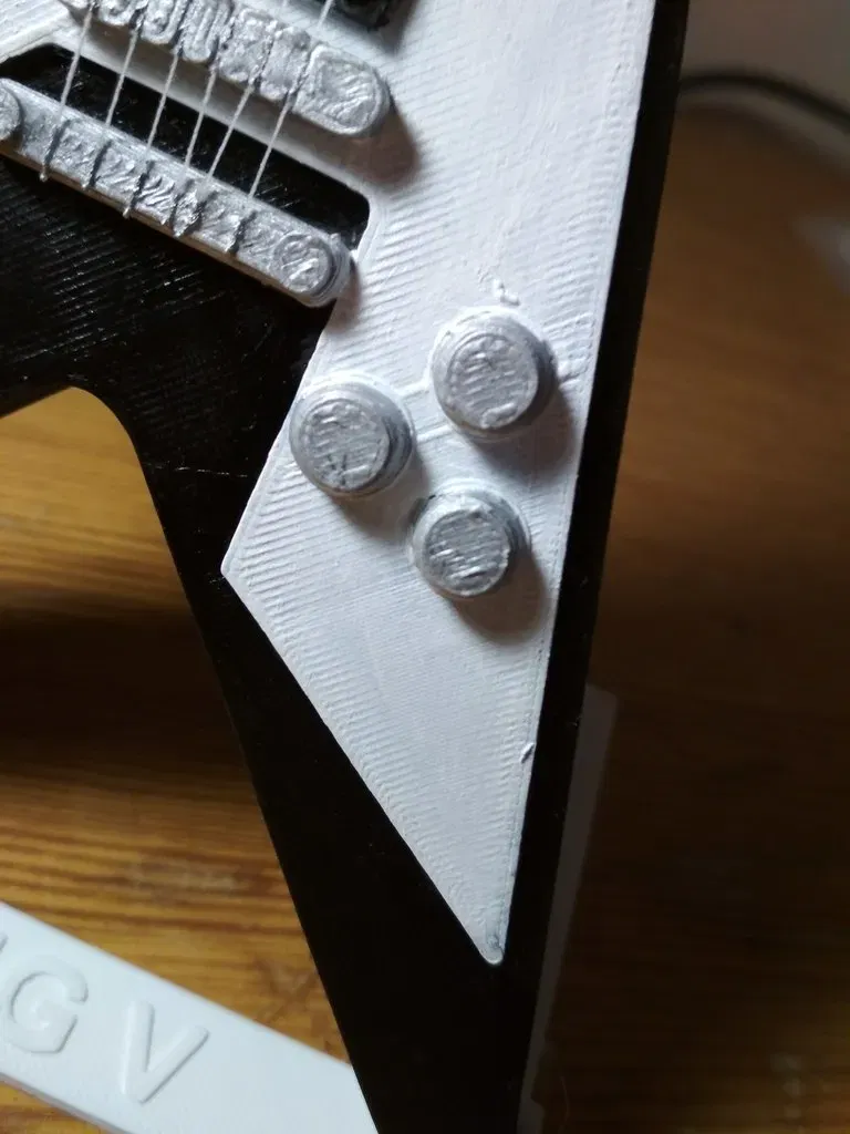 Mô hình Guitar điện dựa trên Gibson Flying V. Tệp STL có tỷ lệ khoảng 1:1. Để in, tôi đã sử dụng hệ số tỷ lệ 0,35, theo ý kiến của tôi, điều này mang lại kết quả tốt nhất. Độ dày lớp 0,2 cho thân và 0,1 là ổn.
