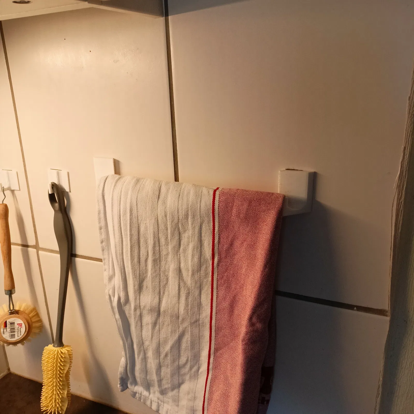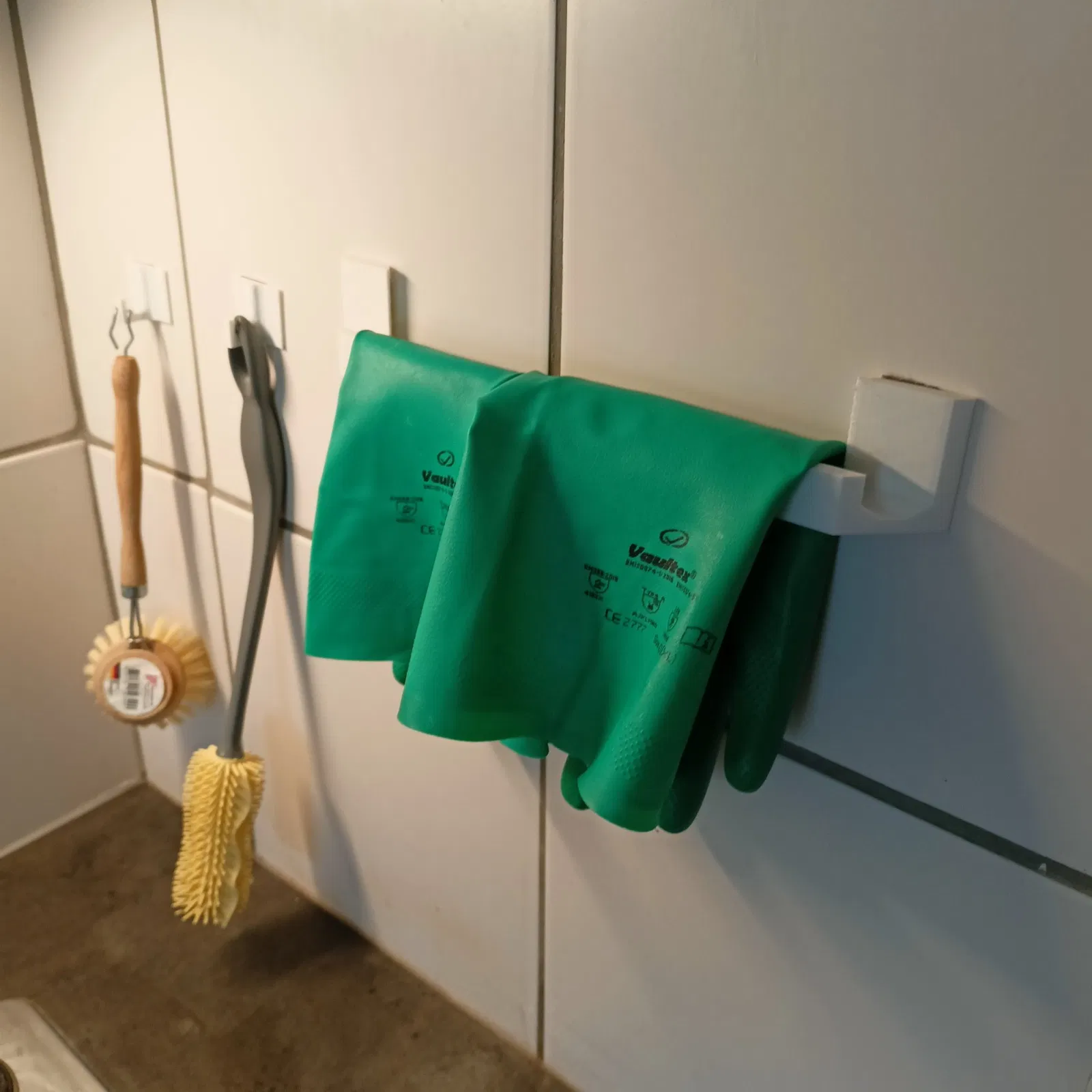 Đây là một móc treo đơn giản cho bếp của bạn. Bạn có thể gắn nó vào tường của mình bằng băng dính hai mặt. Tôi sử dụng nó để treo găng tay, nhưng nó cũng hoạt động tốt cho khăn bếp.