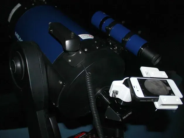 Đây là một bộ chuyển đổi để gắn bất kỳ điện thoại thông minh nào vào bất kỳ thị kính nào. Bộ chuyển đổi thị kính phù hợp với hầu hết các đường kính thị kính của kính thiên văn tiêu chuẩn, và kẹp điện thoại thông minh nên phù hợp với tất cả các điện thoại thông minh (xin hãy cất phablet của bạn đi, bạn đang làm xấu hổ chính mình). Nó cũng có thể dễ dàng được điều chỉnh để phù hợp với thị kính của nhiều loại kính khác. Phiên bản 2 đã được chỉnh sửa để sử dụng bu lông đầu lục giác M6 vì một số cửa hàng phần cứng chỉ có bu lông đầu lục giác từ M6 trở lên, chỉ sử dụng 3 bu lông bây giờ và có ray để giữ thẳng hàng. (thiết kế cho vòi phun 0. 5mm). Các bộ phận bổ sung cần thiết: 3x bu lông đầu lục giác M6x25 3x đai ốc cánh M6