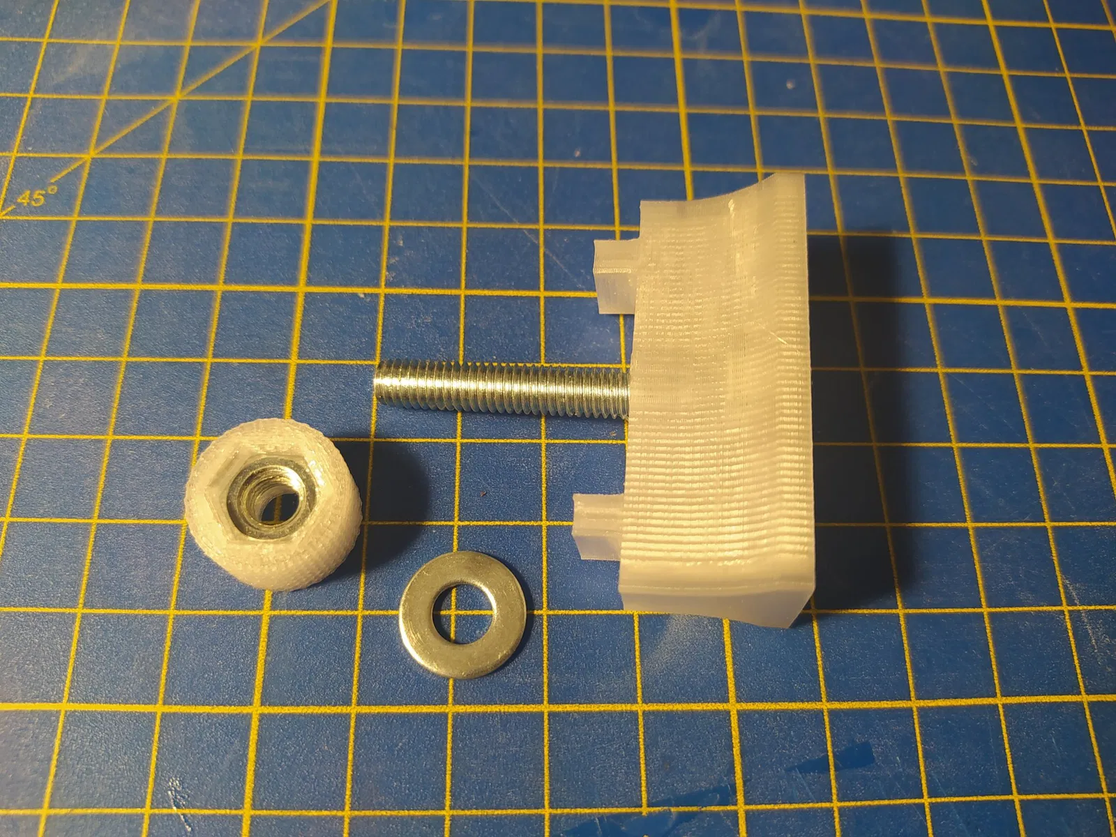 Chất liệu: PETG; vòi phun: 0.4 mm; chiều cao lớp: 0.2 mm; độ đặc: 20%; số dòng tường: 4; không cần hỗ trợ.