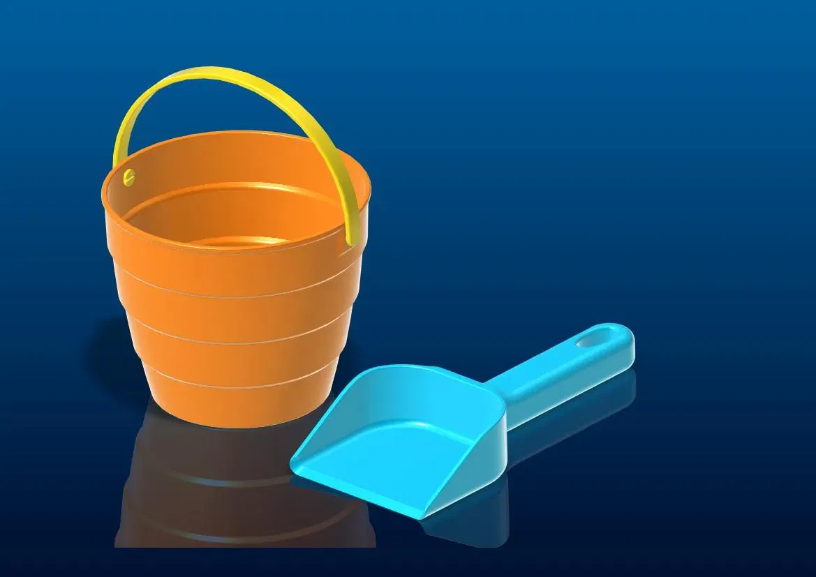 Xô và xẻng cát cho trẻ em chơi ở bãi biển