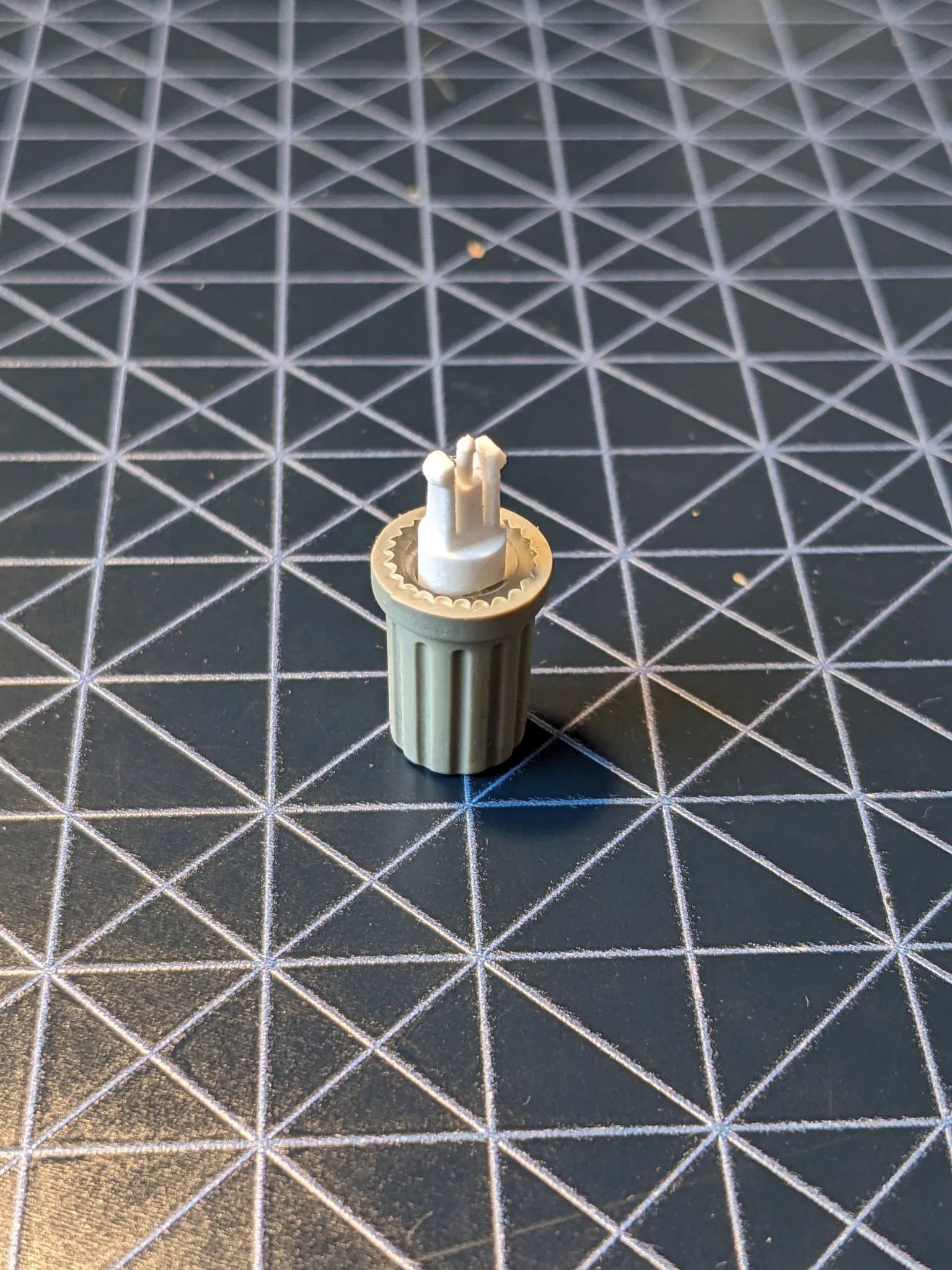 Chi tiết này khá phức tạp và tinh tế, vì nó phục vụ hai mục đích bổ sung: giữ núm lại và cho phép nó được ấn thông qua một hình trụ mỏng ở đầu. Điều này có nghĩa là có lẽ rất khó để in nó bằng một vòi phun 0.4mm, mặc dù bạn có thể thử.
