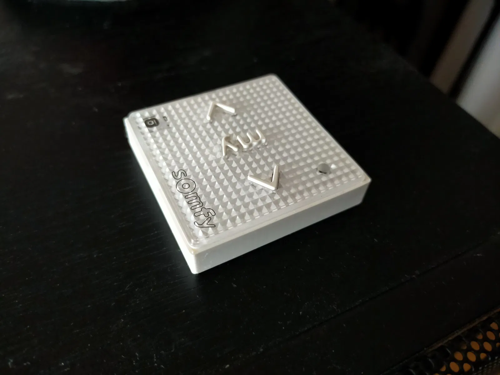 Một vỏ bọc cho điều khiển từ xa Somfy Smoove Origin IO. Nó thường được thiết kế để gắn trên tường để trông giống như một công tắc tường. Vỏ bọc này cho phép bạn giữ nó di động quanh nhà mà không để lộ các bộ phận bên trong và pin ở mặt sau.