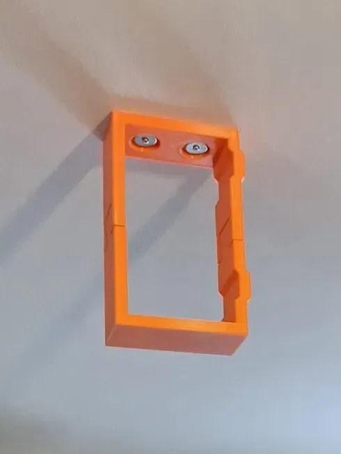 Có 2 lỗ vít ở phần trên của mô hình, với các vòng tròn lún lớn. Sử dụng 2 vít phù hợp với trần mà bạn đang lắp đặt, và đặt 2 khoảng cách kim loại giữa đầu vít và giá đỡ để phân tán áp lực và không làm thủng nhựa.