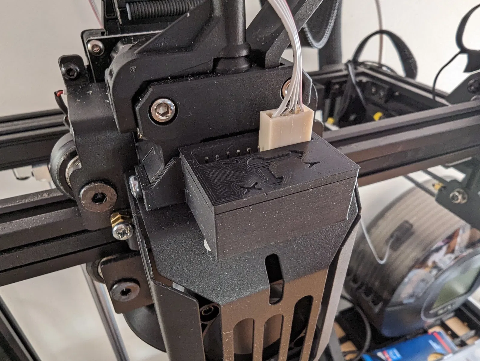 Tính vĩnh cửu: Đây được thiết kế để được gắn cố định và kết nối, vì vậy việc hiệu chỉnh lại có thể đơn giản như kích hoạt nó trong menu Klipper. Do đó, nó phải tối giản và đẹp mắt (càng nhiều càng tốt trong khi vẫn là “một cái hộp”) và điều này đã ảnh hưởng đến thiết kế của các bộ phận giá đỡ theo đường nét của đầu máy in.