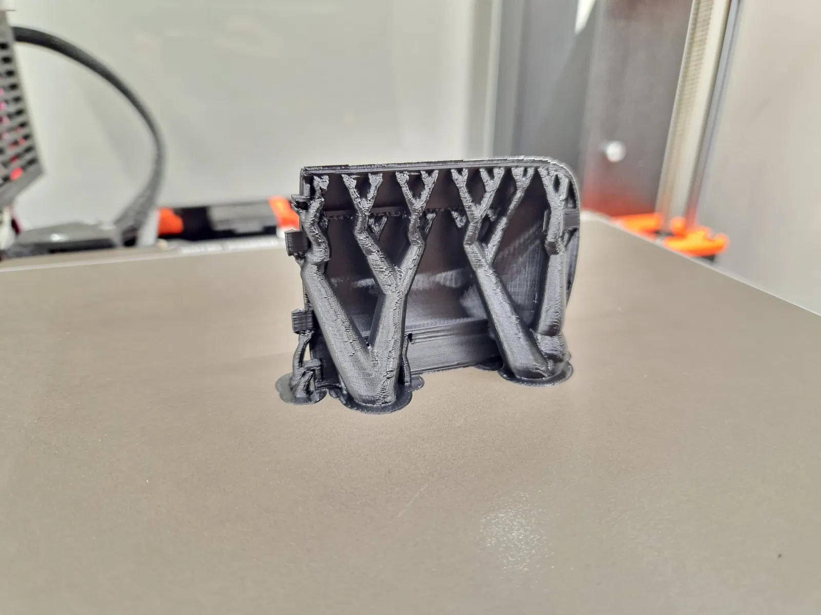 In theo chiều ngang với giá đỡ (hoạt động tốt với tôi bằng giá đỡ hữu cơ eSlicer, chỉ từ bề mặt xây dựng). Tôi đã in cái này với đầu phun 0.4mm, chiều cao lớp 0.2mm, sử dụng PETG.