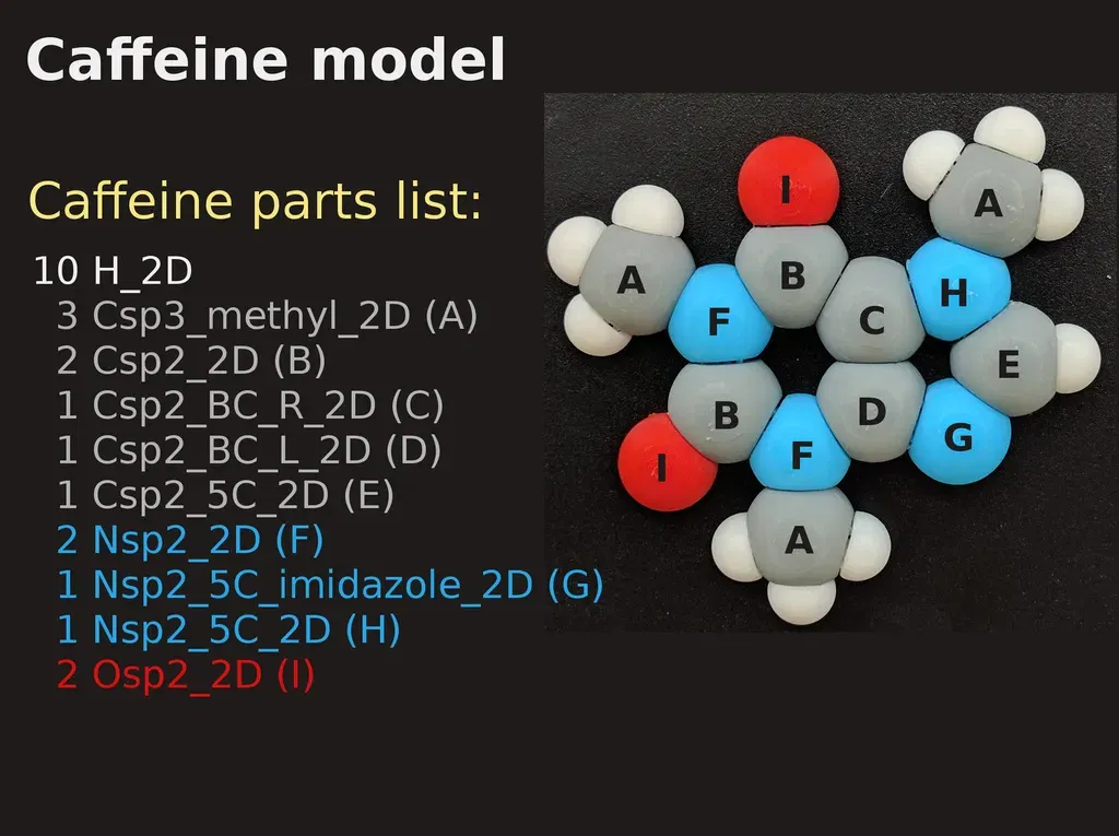 Cps2_BC_L_2D: carbon sp2 bicyclic đặc biệt có thể tạo ra 3 liên kết, được tìm thấy tại giao điểm của các vòng sáu và năm như trong caffeine. (Hướng trái)