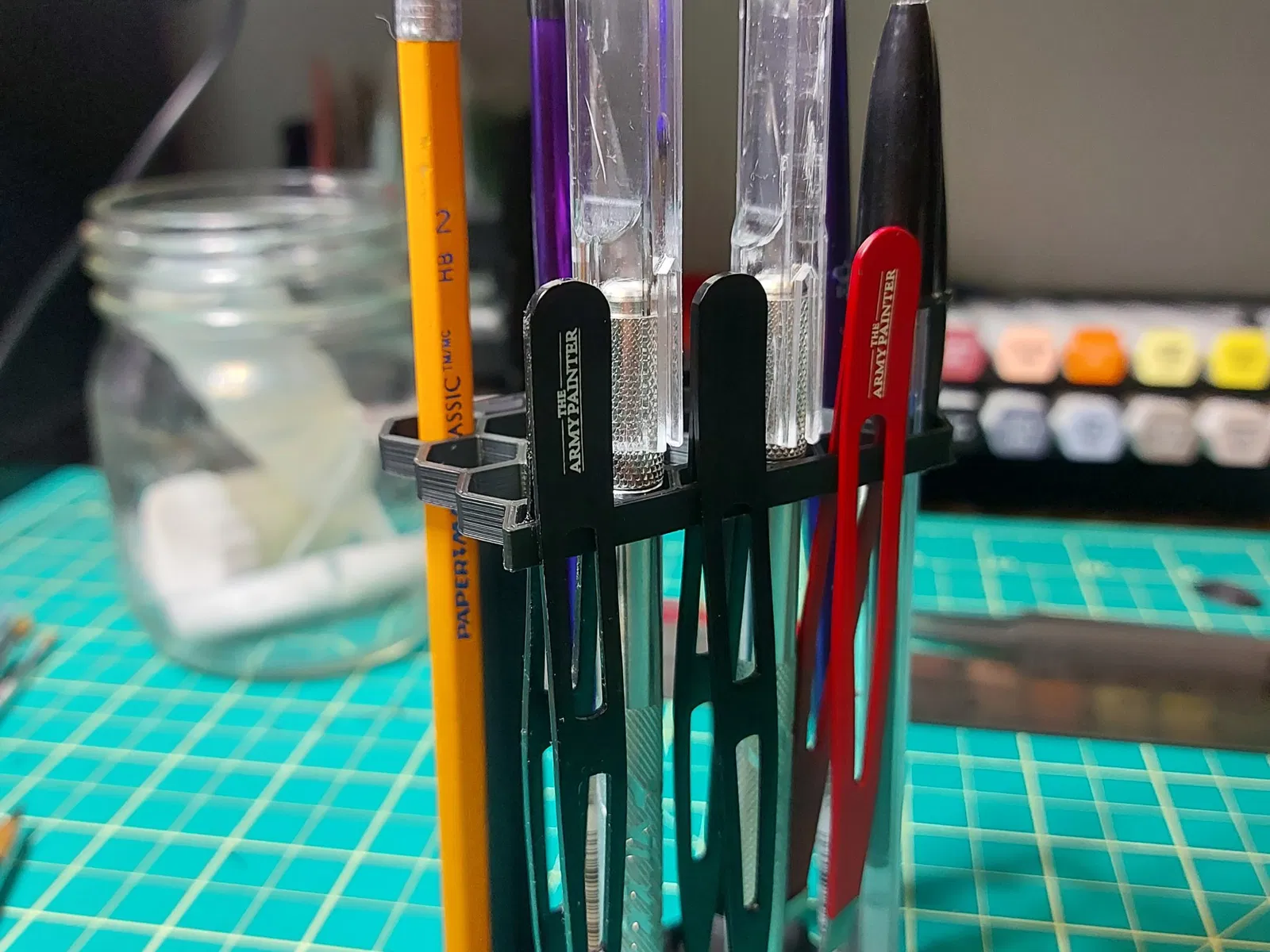 Keo và hỗ trợ là không cần thiết. Nó sẽ giữ tới 18 cây cọ vẽ. Nó có thể được sắp xếp lại theo những cách khác nhau.