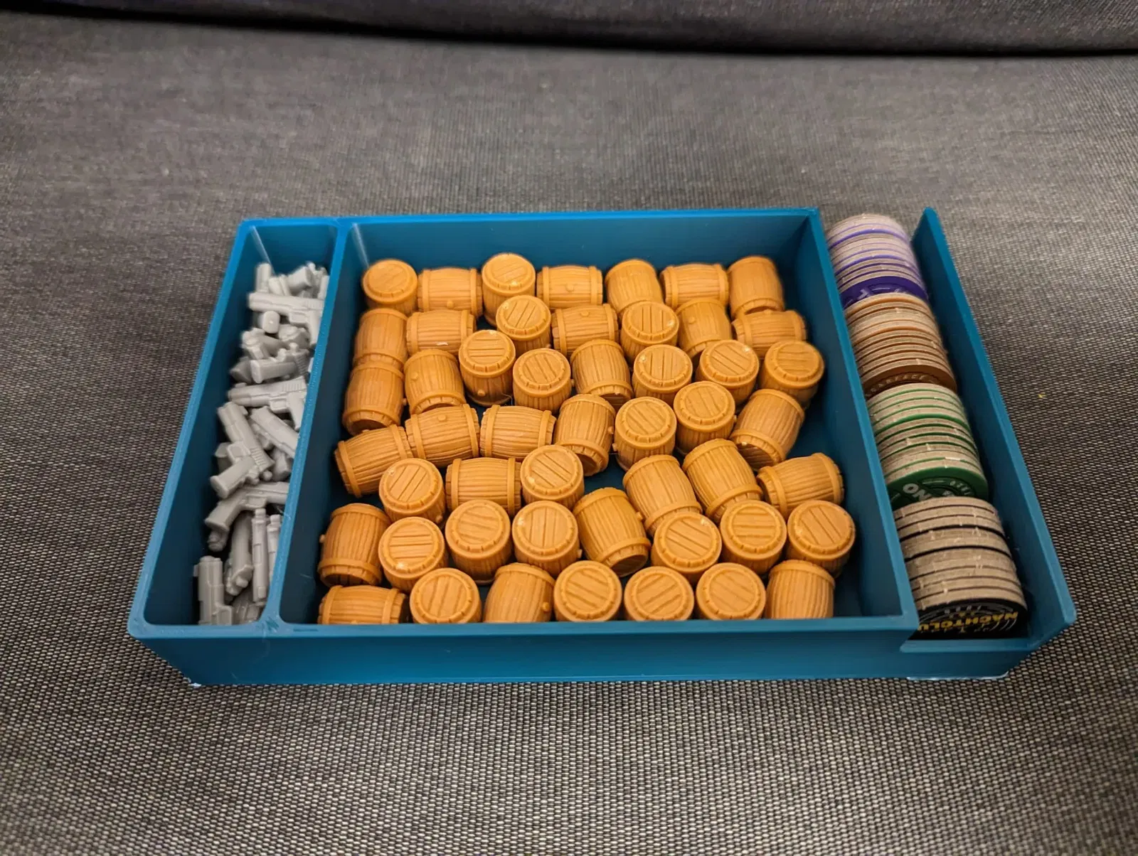 Khay người chơi có thể chứa tất cả các mô hình, thẻ bài và xúc xắc của một người chơi.