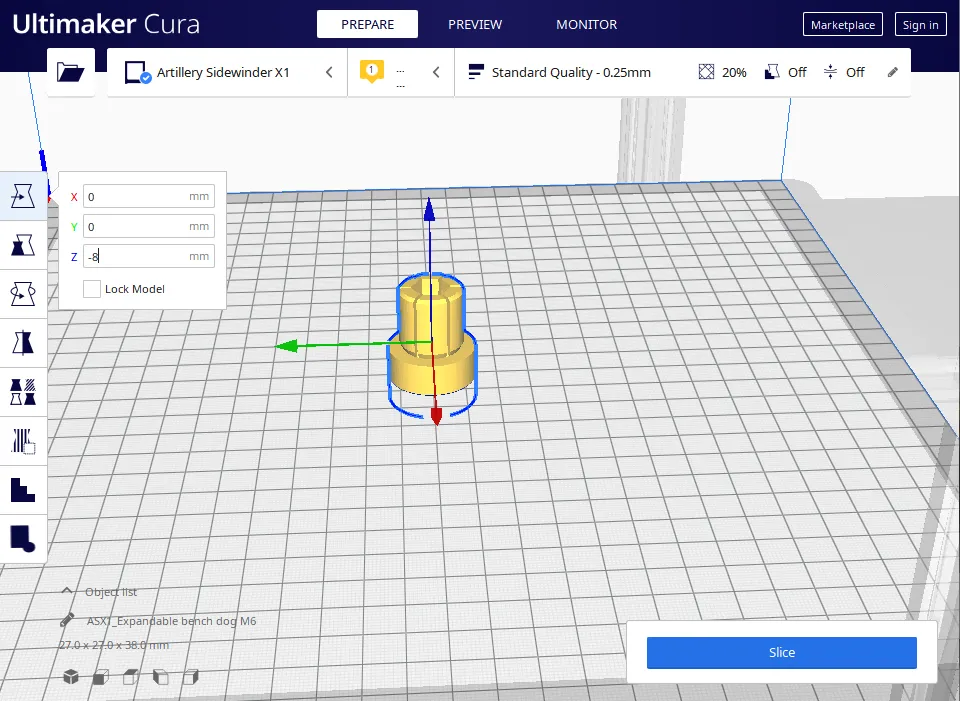Ví dụ: chiều cao mặc định là 20mm, vì vậy bạn có thể di chuyển mô hình 8mm xuống trục z trước khi cắt để có được một mặt bàn cao 12mm.