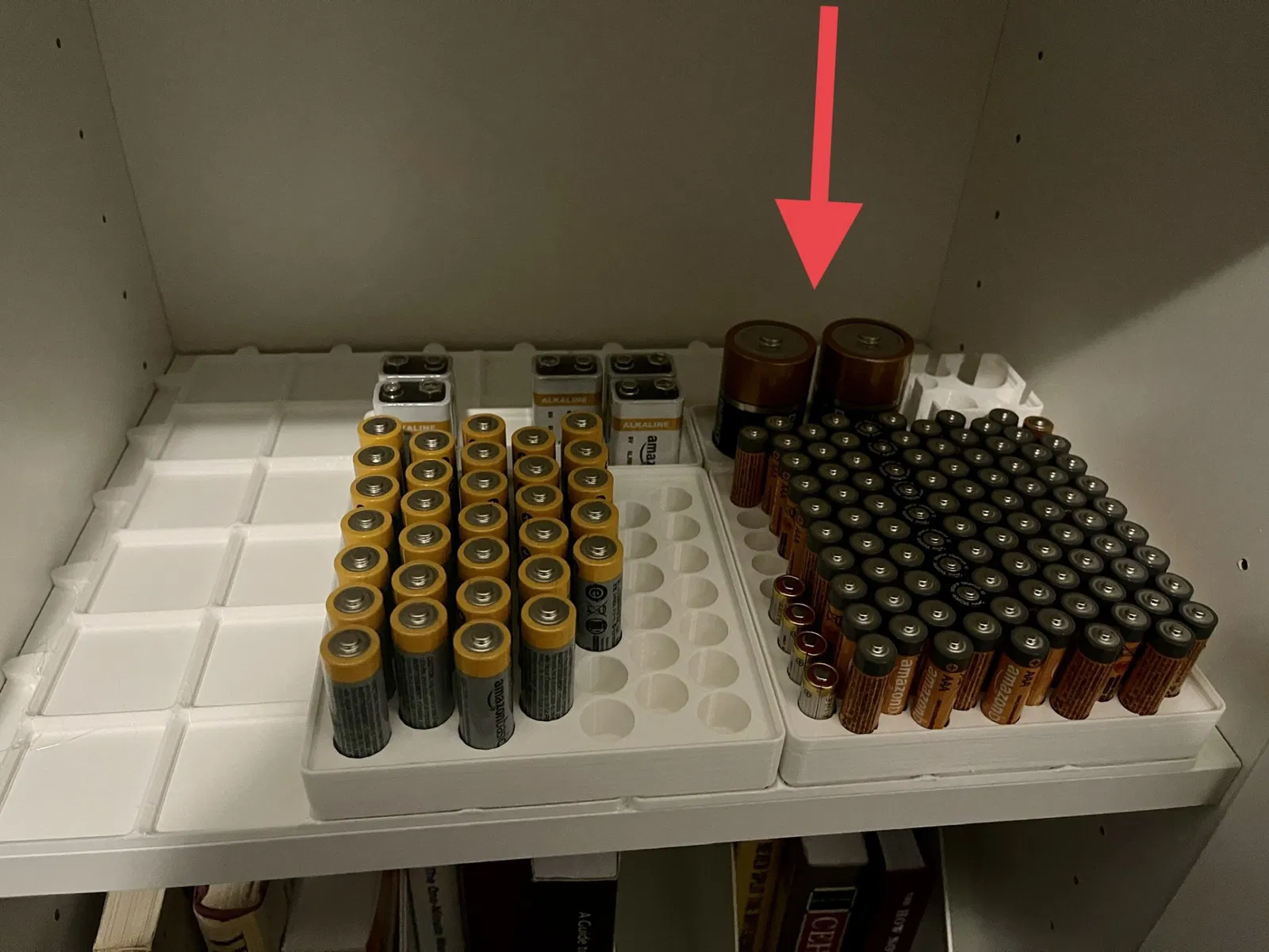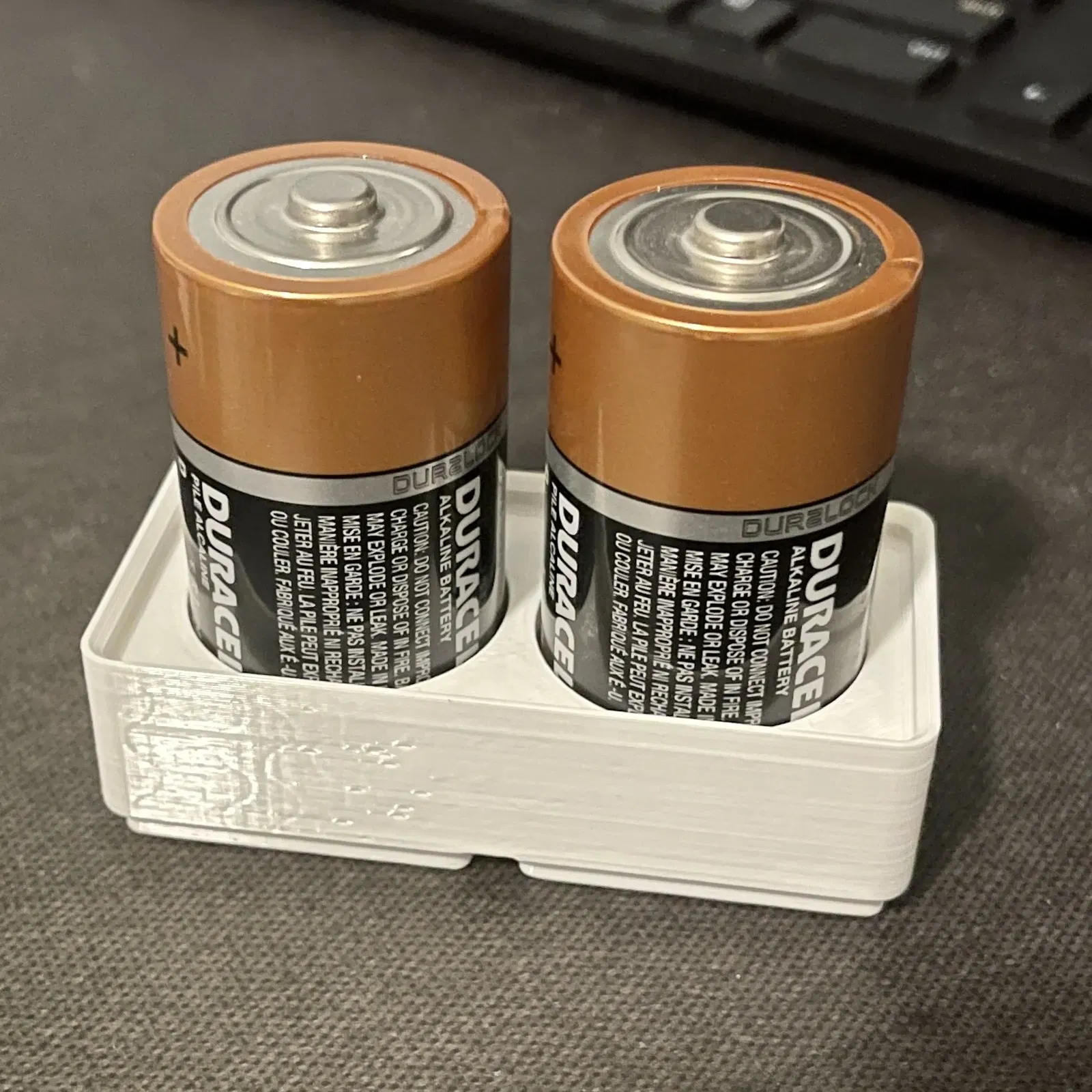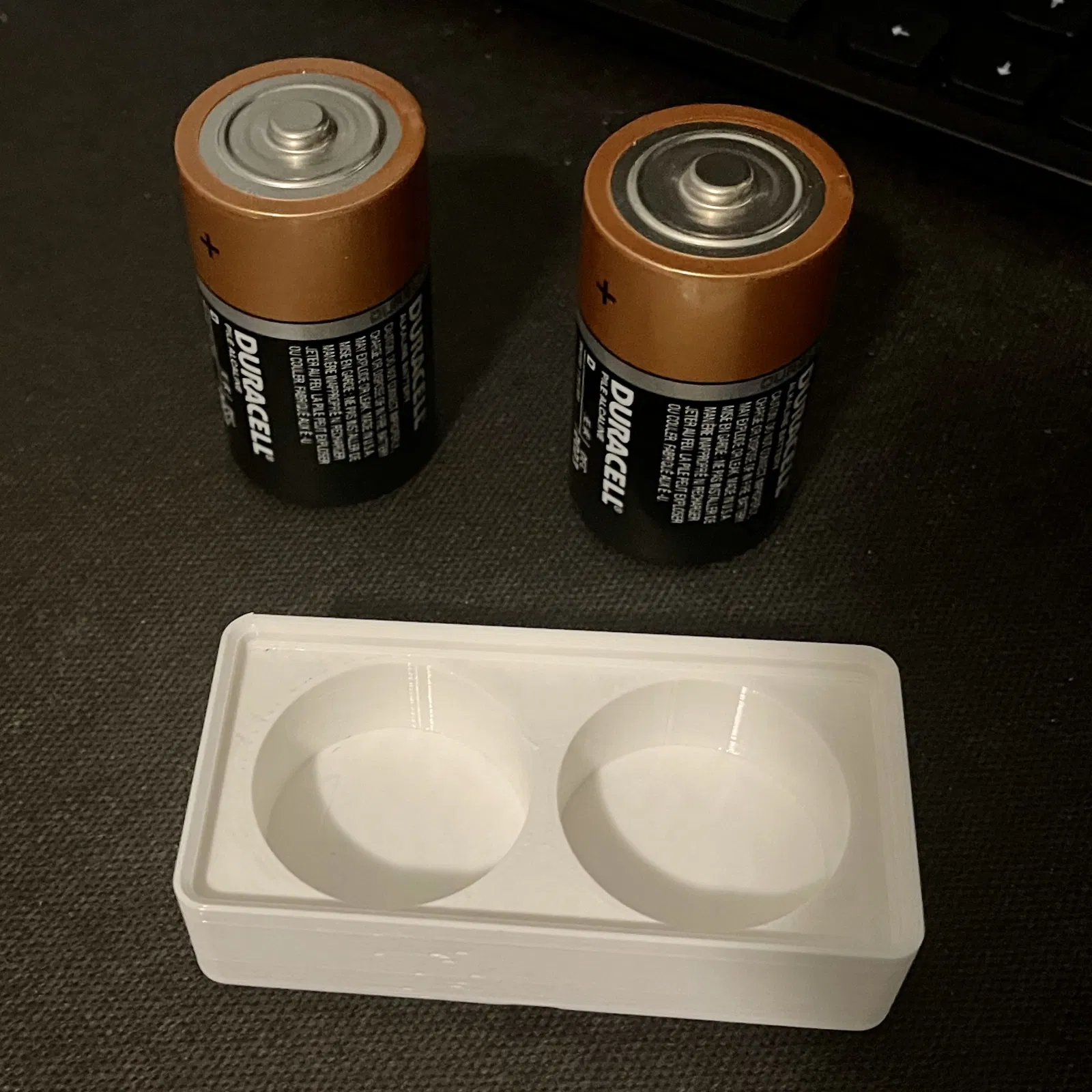 Khối gridfinity 1x2 đơn giản, có hai pin D cần một chỗ để đặt, không có lỗ ở đáy, in nhanh/đơn giản.