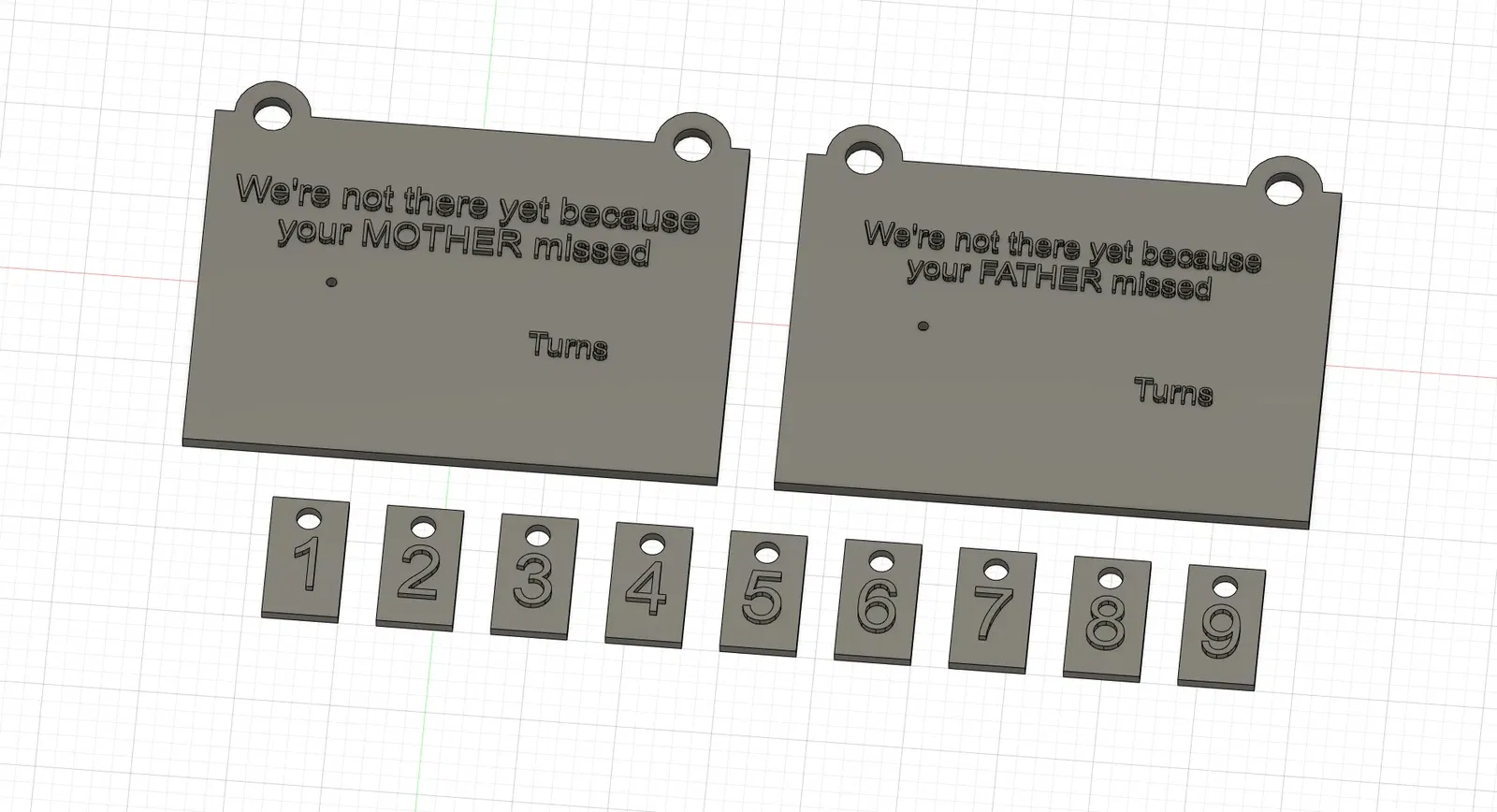 Bắt đầu một cuộc tranh cãi bằng cách theo dõi điểm số của những lượt đi lỡ trên một chuyến đi đường. Chỉ cần thêm một con vít M3 làm chốt để treo các số và một sợi dây hoặc cái gì đó để treo nó từ gương chiếu hậu... hoặc bất kỳ đâu khác có độ hiển thị cao đối với người đang bị chỉ trích.