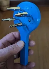 Lấy một kẹp cá sấu và trượt nó vào tay quay. Căn chỉnh các tab ngón cái trên tất cả các tay quay sao cho chúng cùng hướng.