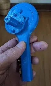Lắp ráp các tay quay vào mũ cao, đặt một vòng đệm lên tay quay và sử dụng một giọt keo siêu dính. Cẩn thận không để keo dính tay quay vào mũ; đặt trung tâm vào tay cầm sao cho nó sẽ bằng phẳng ở cả hai bên. Vặn các kẹp giữ vào trung tâm ở phía dưới và xoay các kẹp sao cho cổ nhô lên áp sát vào trung tâm và tab kéo dài qua tay cầm. Điều này sẽ giữ cho phần trung tâm ở vị trí và cho phép nó quay.