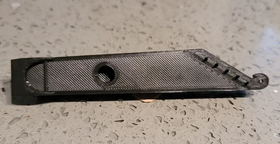 Mô hình này có thể được in ở hướng hiện tại với giá đỡ. Tôi đã chọn không gỡ bỏ các giá đỡ dưới thanh giữ dây trong bản in thử nghiệm của mình.