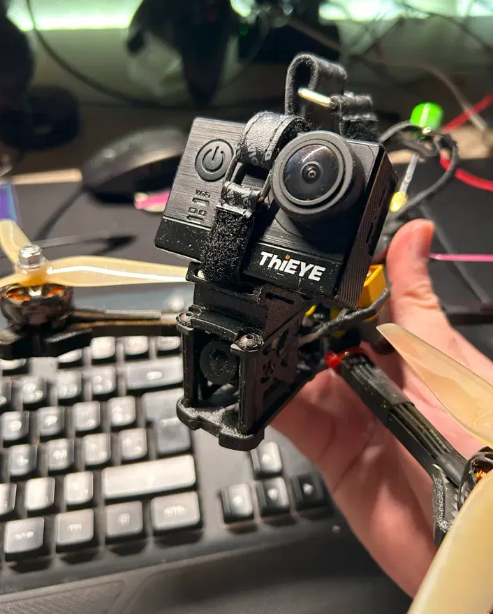 Tôi đã làm cái này cho Thieye T5E của mình rồi gắn nó vào drone của tôi bằng bộ hỗ trợ này. Đây là một giá đỡ camera với góc 30°.