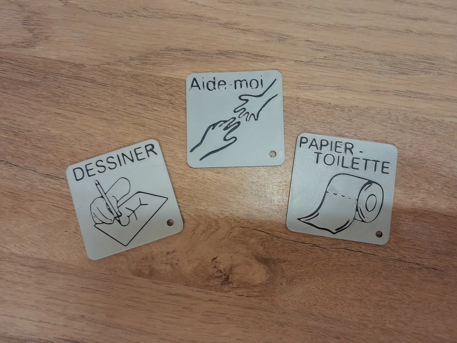 Thẻ pictogram cho phép gắn lên móc chìa khóa.