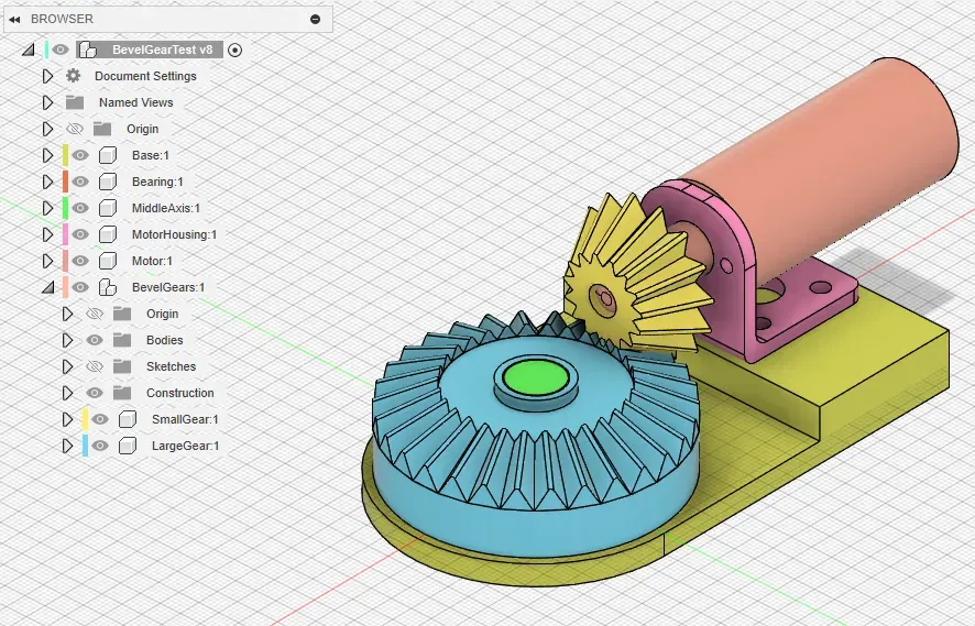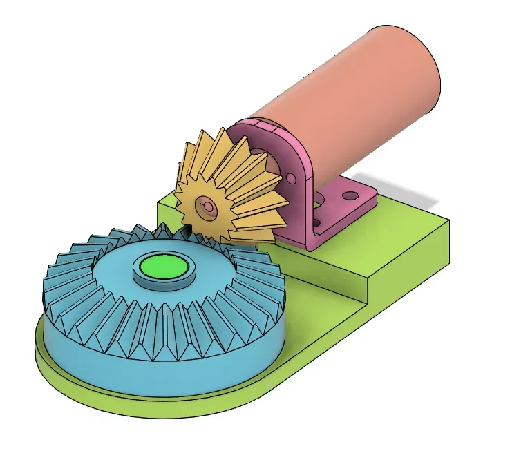 Tôi cần một hệ thống bánh răng chéo cho một dự án khác, và tôi đã cố gắng tìm kiếm các giải pháp có sẵn, nhưng tôi chỉ tìm thấy những cái mà các tệp được cung cấp dưới dạng STL, khiến chúng khó sửa đổi. Vì vậy, tôi quyết định thử sức thiết kế bánh răng của riêng mình, sử dụng hướng dẫn này:. Tôi đã thử nghiệm hệ thống với một động cơ DC Elecrow RPL13701K, cũng được mô hình hóa trong thiết kế cùng với vỏ của nó. Động cơ hoặc vị trí của nó thực sự không được kết nối với các bánh răng trong thiết kế, vì vậy khi thay đổi các tham số của bánh răng, động cơ sẽ không còn được đặt đúng vị trí nữa. Tôi đã tạo ra một số tham số rất thô để di chuyển động cơ vào vị trí sau khi thay đổi cài đặt bánh răng (MotorHeightAdjustment & MotorDepthAdjustment). Ngoài ra, bánh răng lớn hơn được thiết kế để có một ổ bi bên trong. Ổ bi cũng được bao gồm trong thiết kế, vì vậy bạn có thể thay đổi kích thước của nó để phù hợp với một ổ bi mà bạn sẽ sử dụng (hoặc thay vào đó chỉ cần lấp đầy không gian này để không sử dụng ổ bi). Các tham số (một số thuật ngữ có thể không chính xác, tôi rất mới với cơ khí):