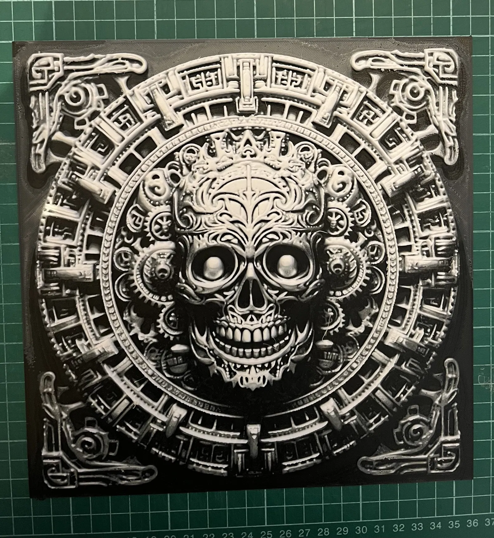 Hueforge In của hộp sọ trên nền Lịch Maya