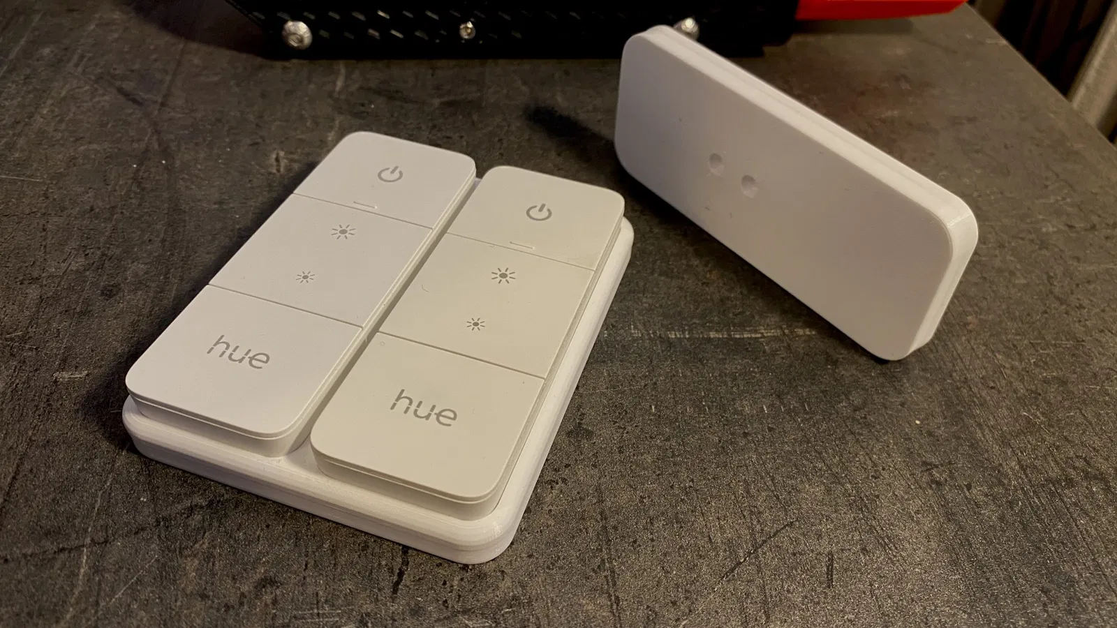 Bảng điều khiển dimmer Philips Hue V2 được gắn bằng băng dính hai mặt.