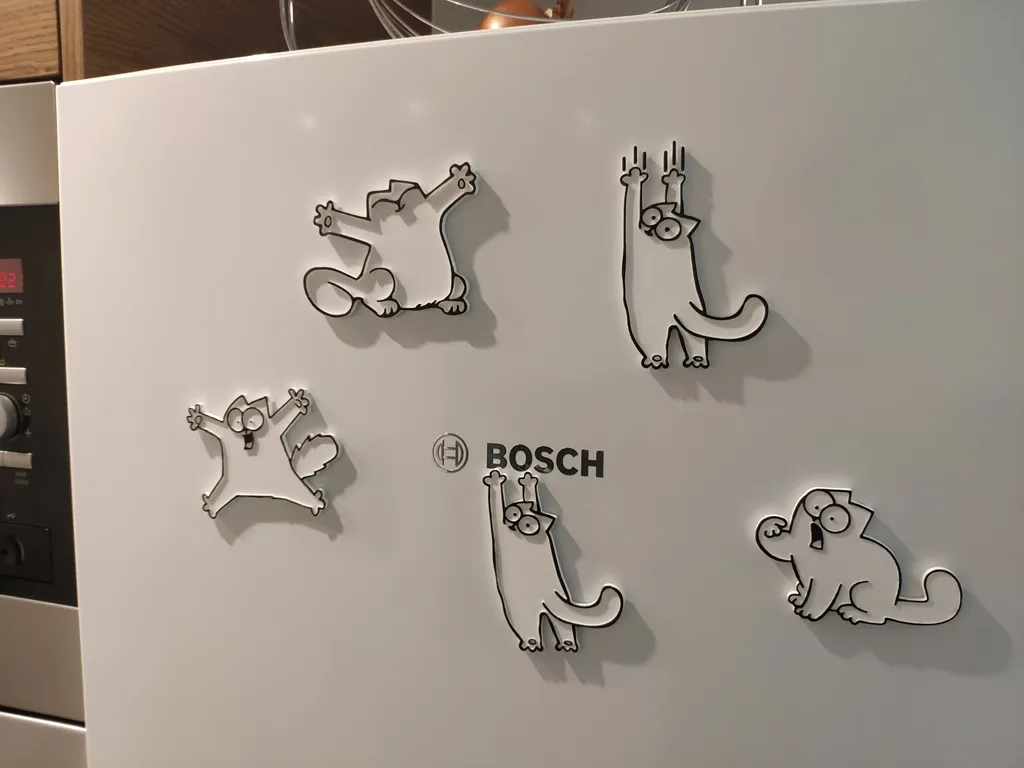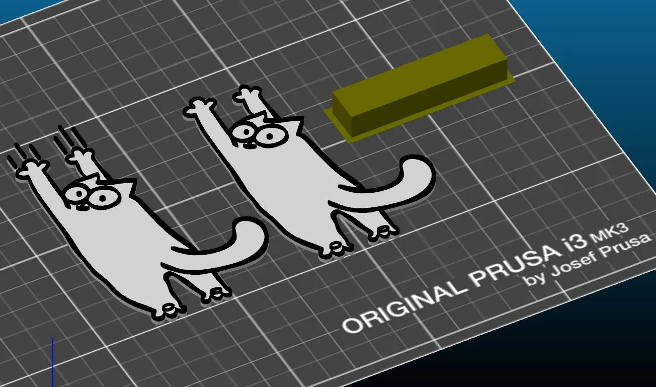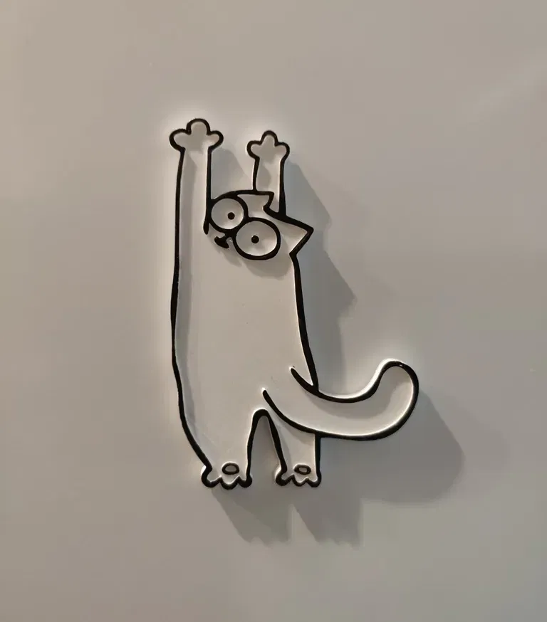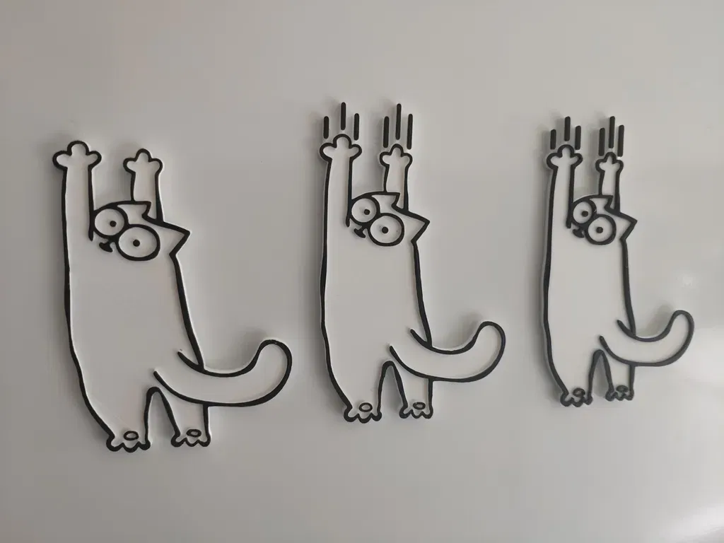 Hình dáng mèo của Simon, phiên bản cào và phiên bản kéo dài. Có thể sử dụng làm nam châm tủ lạnh bằng cách dán một nam châm vào mặt sau. Tôi là một fan lớn của phim hoạt hình Mèo của Simon. Nếu bạn không biết đó là gì, hãy xem tại: https://simonscat. com/ Cảm ơn Sthone vì đã chia sẻ. (thing:2019081) Tôi chỉ loại bỏ thẻ từ thiết kế của anh ấy để tạo ra những tệp này. Và đã thêm một số vết cào cho phiên bản mới đó. ;)