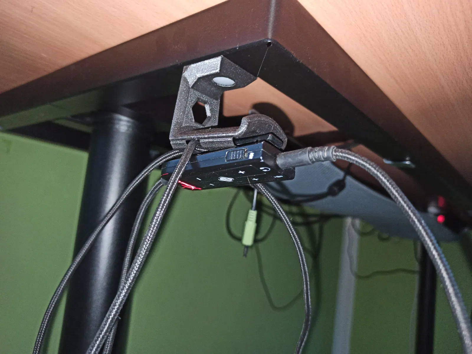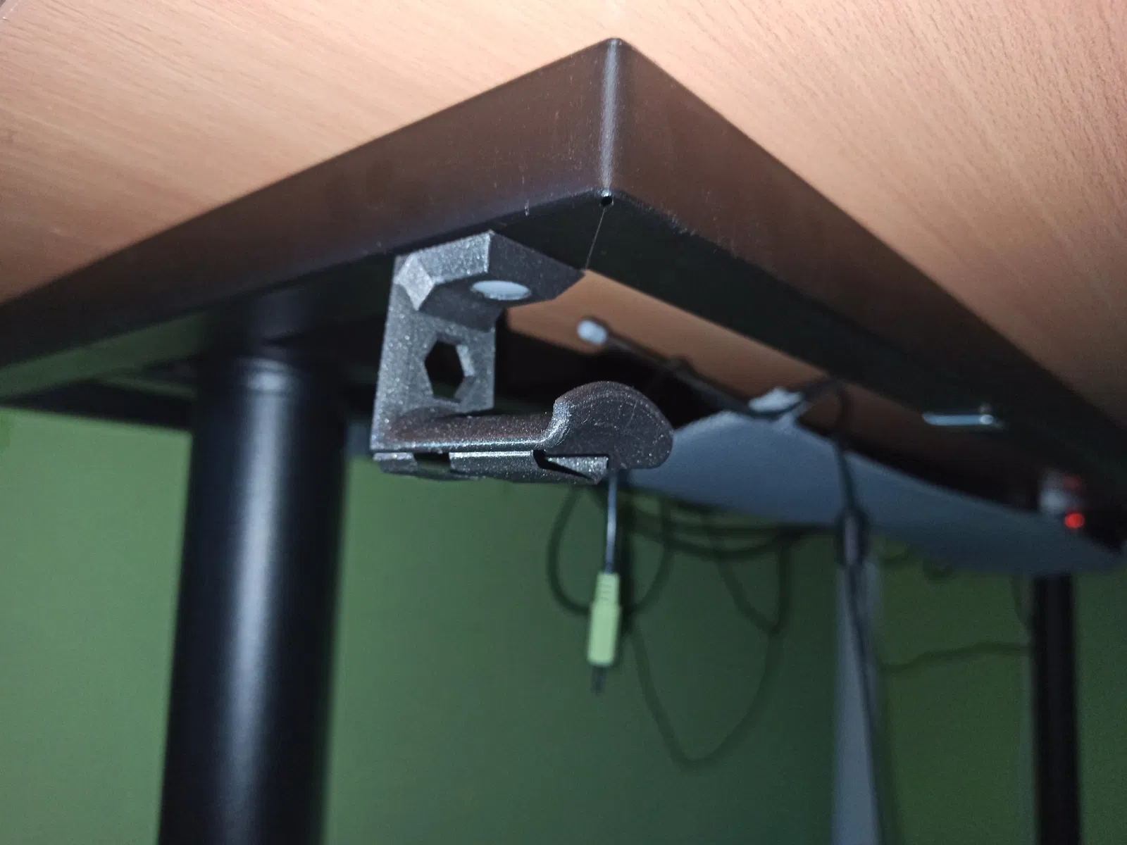 Tôi đã thiết kế một giá đỡ tai nghe đơn giản. Có 2 phiên bản. Phiên bản đầu tiên (phiên bản vít) dành cho mọi bàn và bạn có thể bắt vít nó bằng một cái vít đơn giản. Phiên bản thứ hai (phiên bản Ikea Bekant) dành cho bàn Ikea Bekant, (https://www.ikea.com/cz/en/p/bekant-underframe-for-table-top-black-30252906/#content) có các chốt kết nối cho lưới cáp dưới bàn. Bạn có thể sử dụng hệ thống gắn của họ để giữ giá đỡ tai nghe của tôi.