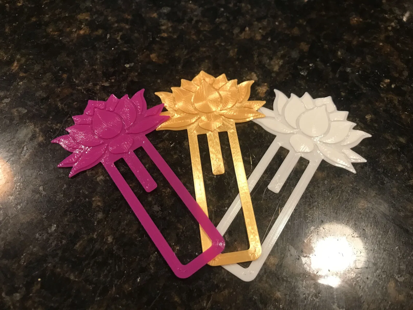 Một dấu trang đơn giản với thiết kế hoa sen. In ở 30 lớp hoặc nhiều hơn với tốc độ in nhanh hơn và một mẫu đồng tâm đẹp. Ba lớp tiêu chuẩn sẽ chậm hơn nhiều nhưng bạn có thể chọn mẫu lấp đầy cho phần trên/dưới của mình.