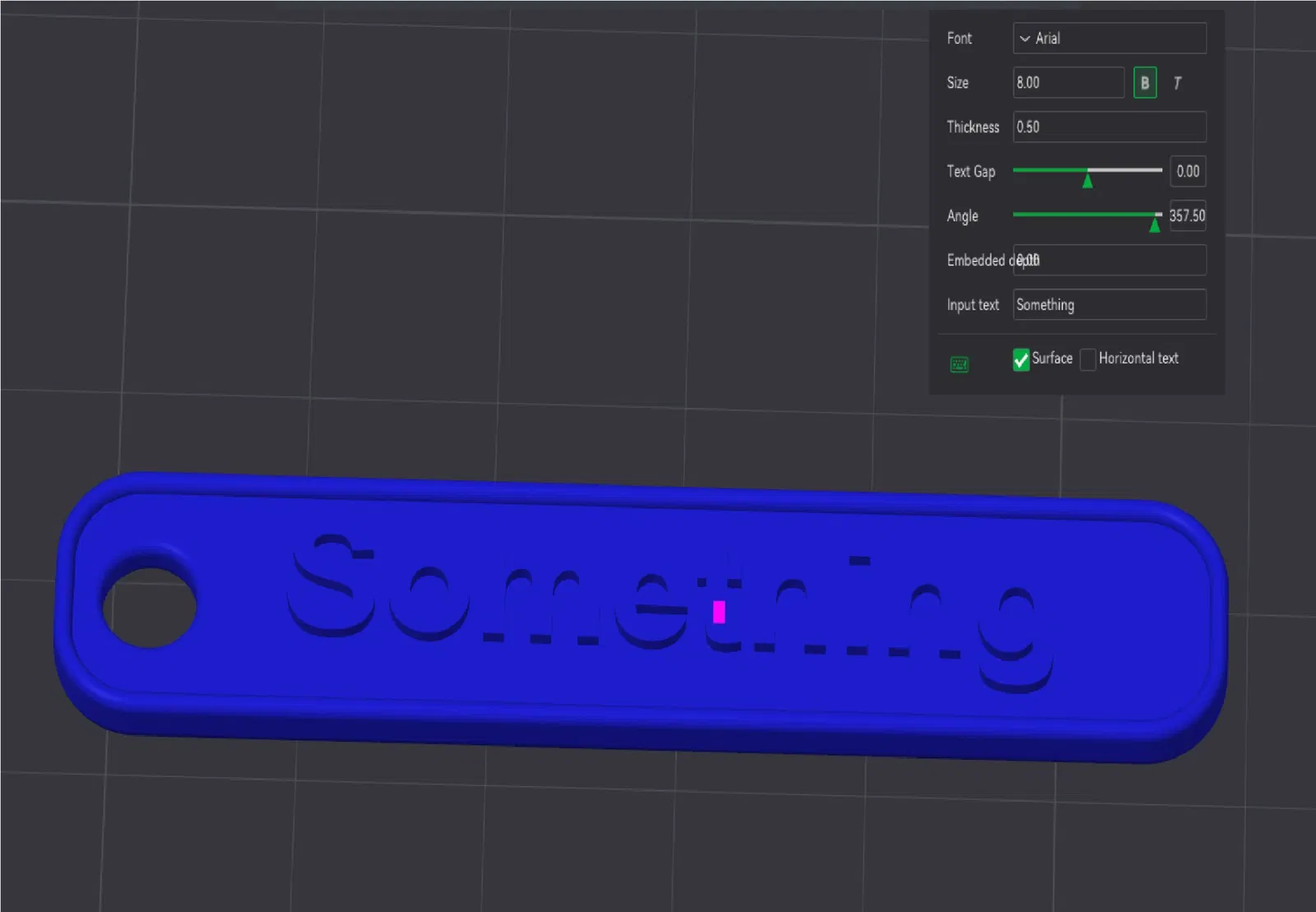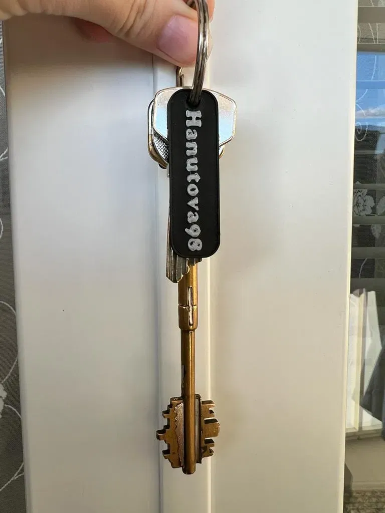 Thẻ khóa tùy chỉnh nhỏ. Kích thước của văn bản tối đa 8 mm. Độ dày 0,5 mm Vòi phun 0,4mm
