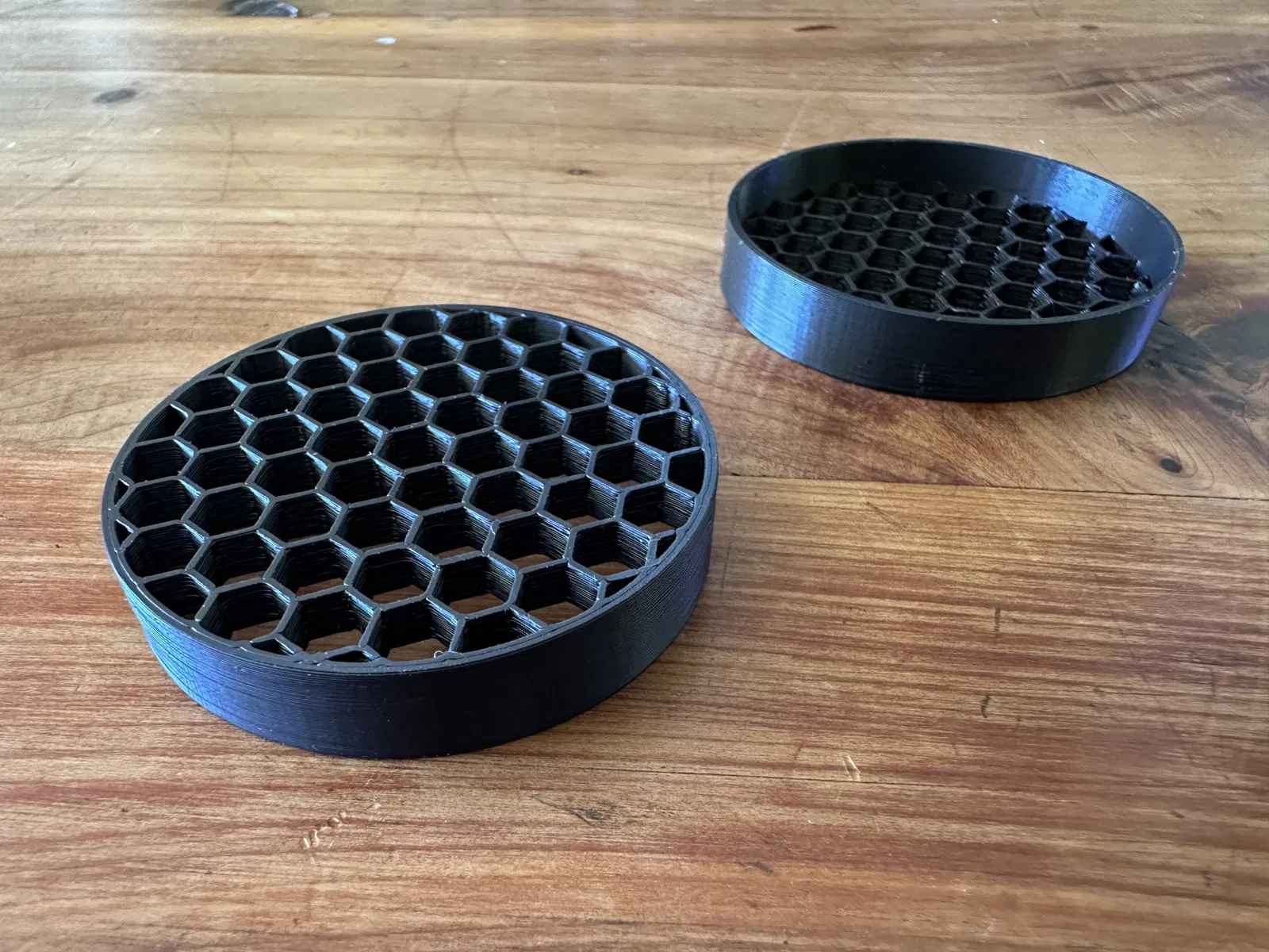 - Sau khoảng một năm rưỡi sử dụng các tấm louver ASA, tôi nhận thấy trung tâm của tổ ong đã bắt đầu bị sụt xuống. Tôi đã in lại bằng PCCF và thay thế, mà tôi sẽ giả định sẽ bền hơn. Tất nhiên, việc làm dày thêm các bức tường lục giác hoặc thêm không gian cũng sẽ giảm thiểu vấn đề, nhưng tôi đặc biệt ngần ngại thực hiện điều trước.