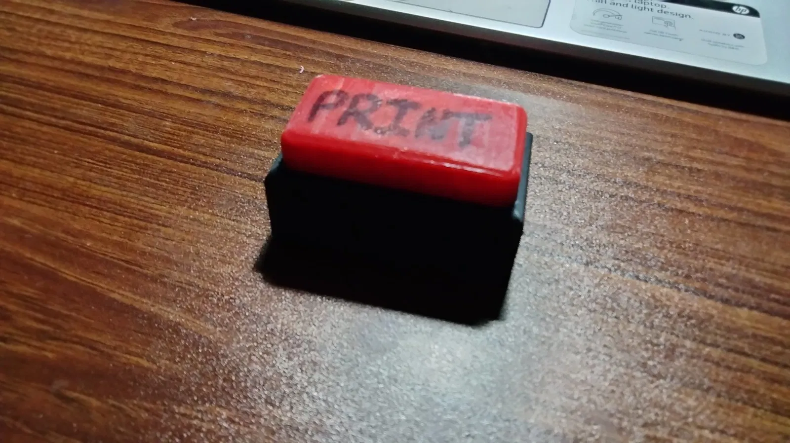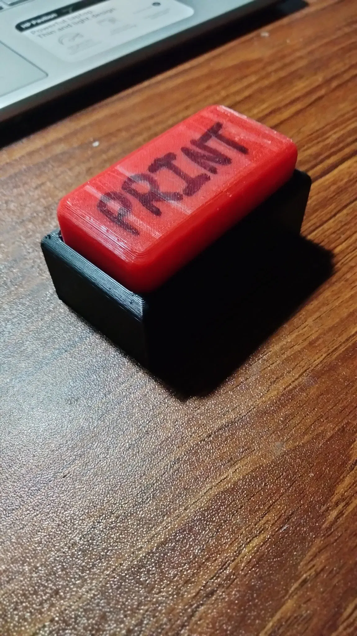 Đây là một nút mà tôi thiết kế, nó được in thành 2 phần và cần có lò xo bên trong. Bạn có thể in văn bản để đặt lên trên hoặc bạn có thể chỉ cần viết nó bằng một cây bút Sharpie như tôi đã làm.