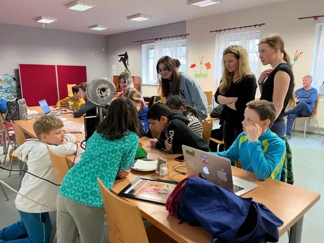 Chúng tôi đã dạy trẻ em cách đăng nhập vào chương trình ThinkeCad và tạo ra các mô hình cơ bản. Sau khi hoàn thành, chúng tôi đã chỉ cho chúng cách xuất mô hình dưới dạng .STL và mở nó trong Slicer, nơi nó được chuẩn bị để in. Chúng tôi đã giới thiệu cho chúng các thiết lập cơ bản của việc in ấn và cách xử lý thẻ SD, mà chúng biết cách đưa vào máy in. Bước cuối cùng là trẻ em đã tự khám phá màn hình của máy in và biết cách đưa tệp vào in.