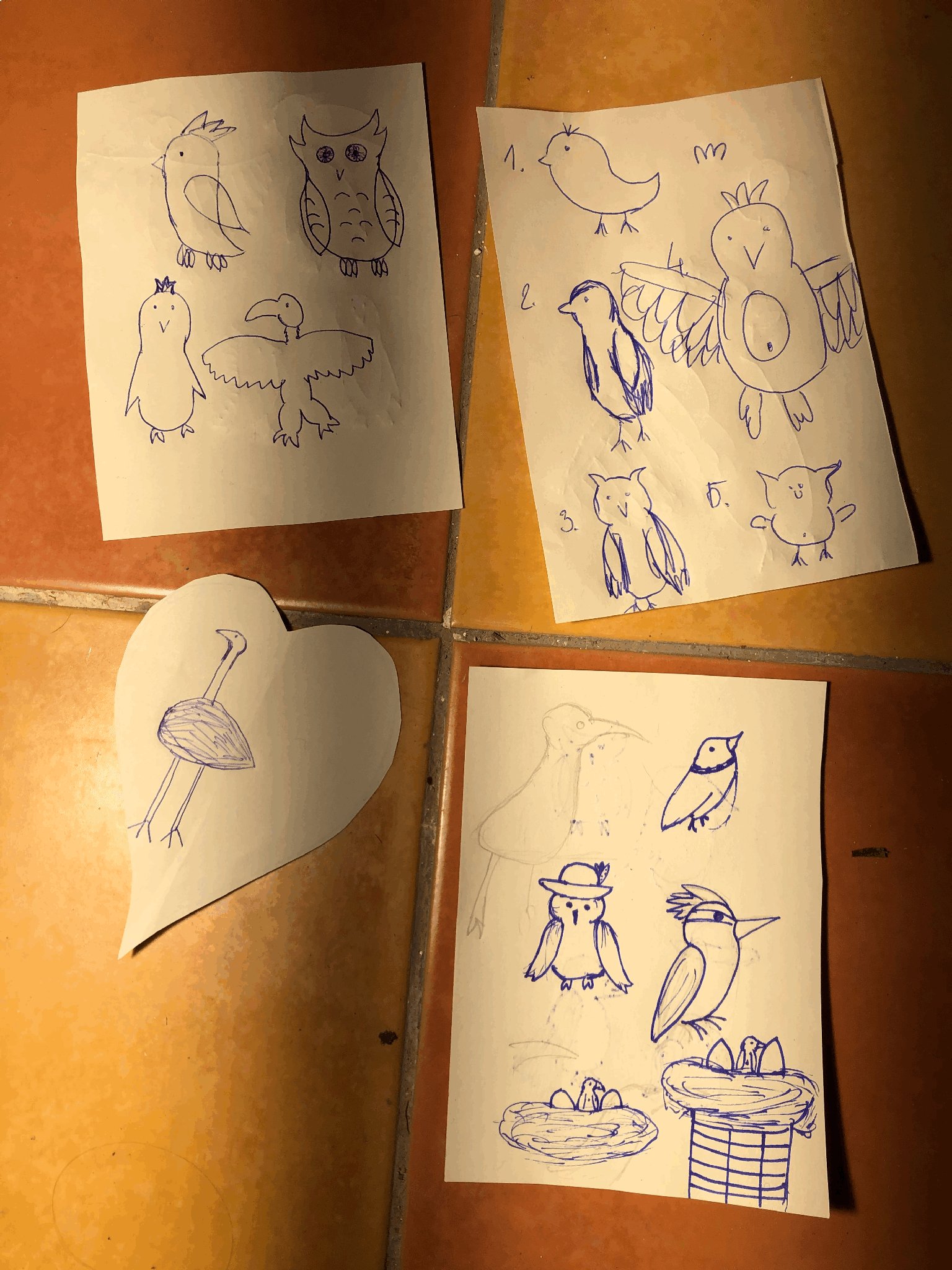 Trẻ em đã tạo ra hình thức của một con chim tượng trưng cho chúng, đồng thời nó có thể xảy ra không chỉ trong trí tưởng tượng của chúng.