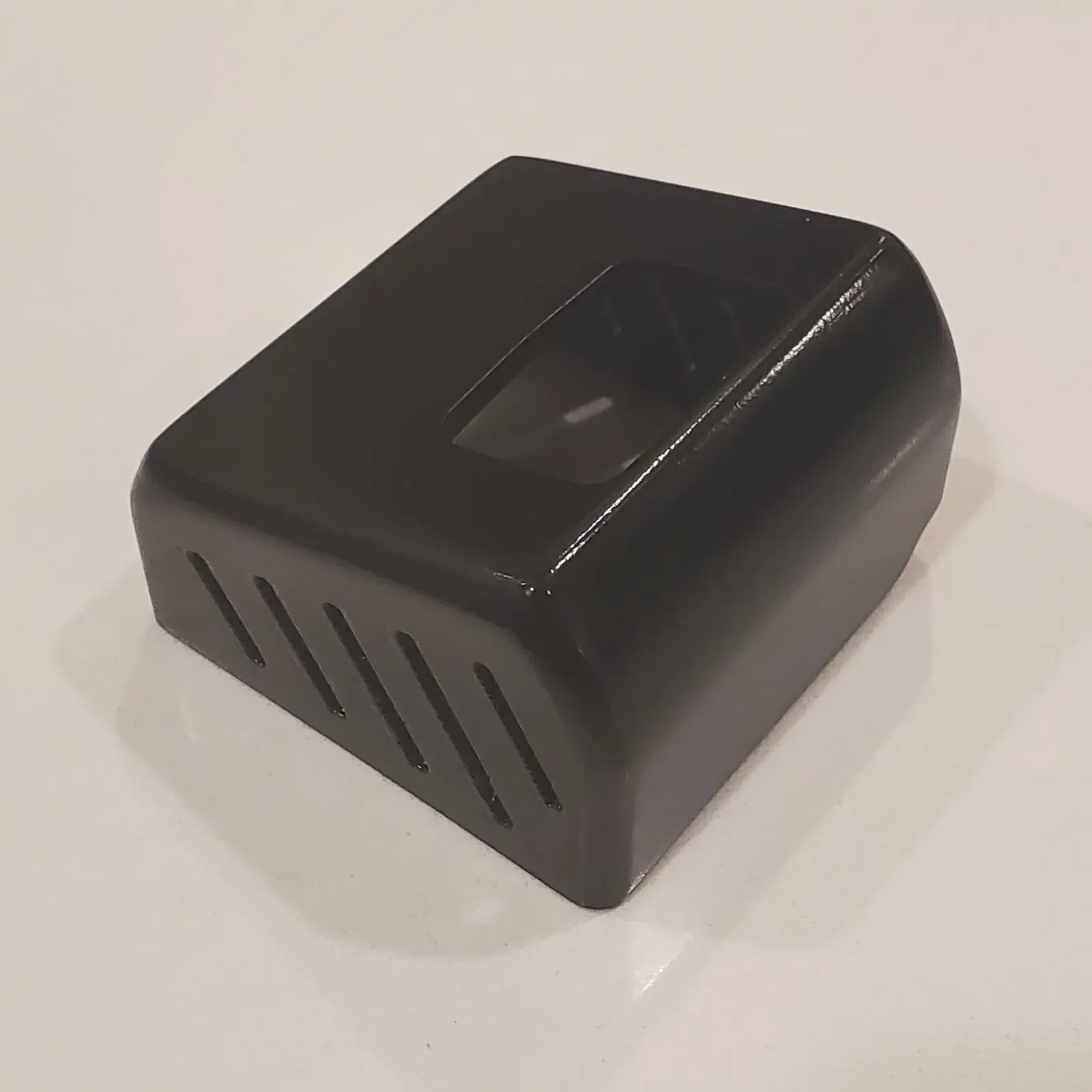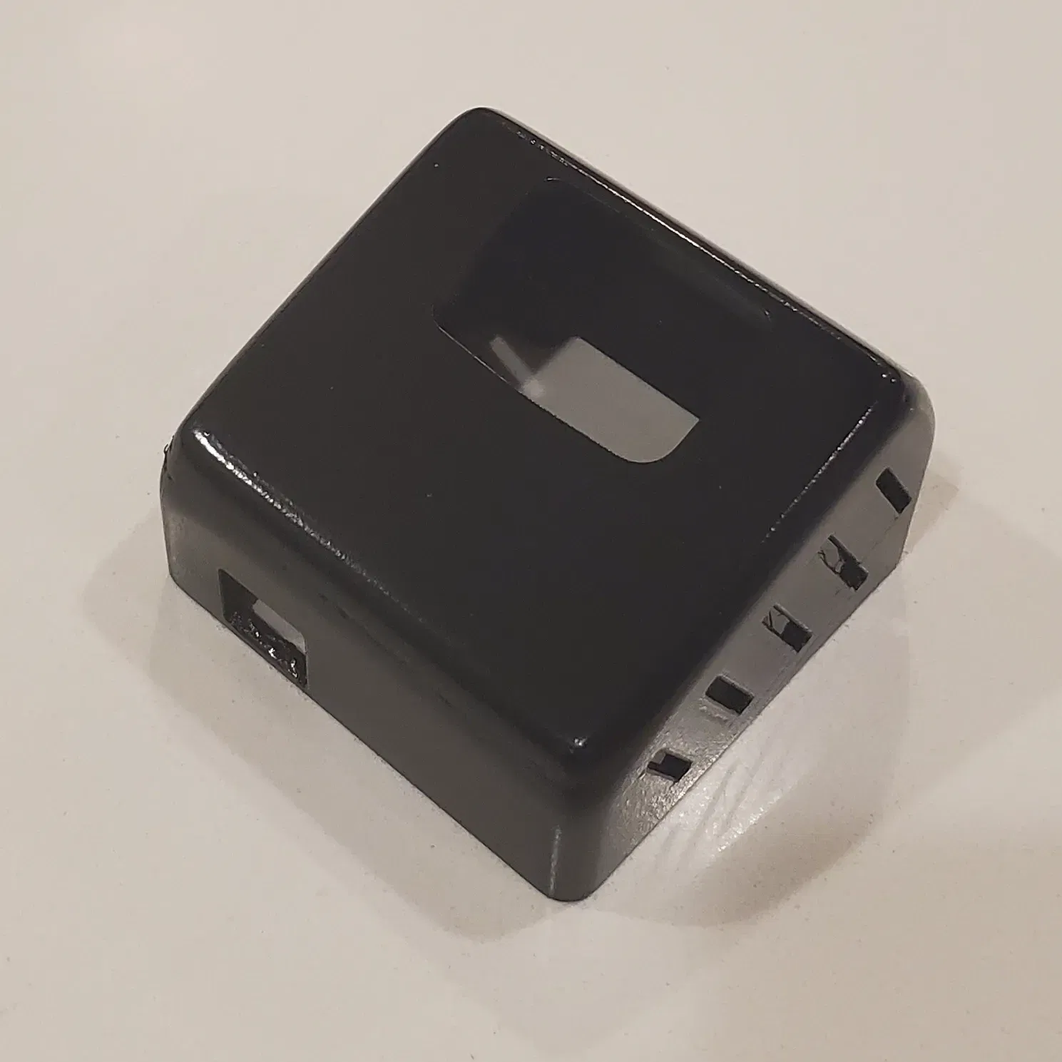 Tôi đã in với mặt có lỗ ống kính hướng xuống giường in và sử dụng hỗ trợ tối thiểu xung quanh các cạnh bên ngoài và khe cắm USB. Tôi cũng đã chà nhám ướt và sơn phun bằng một sự kết hợp sơn/keo lót.