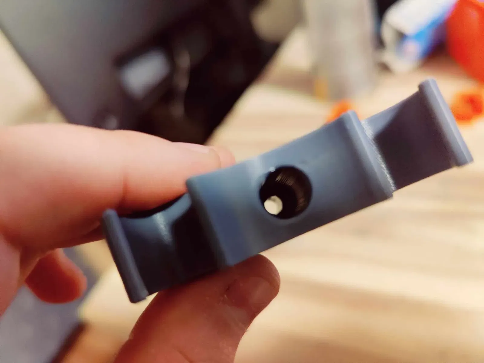 tốt nhất là in bằng petg hoặc vật liệu tương tự để nó có một chút độ linh hoạt để đưa ống dẫn vào.