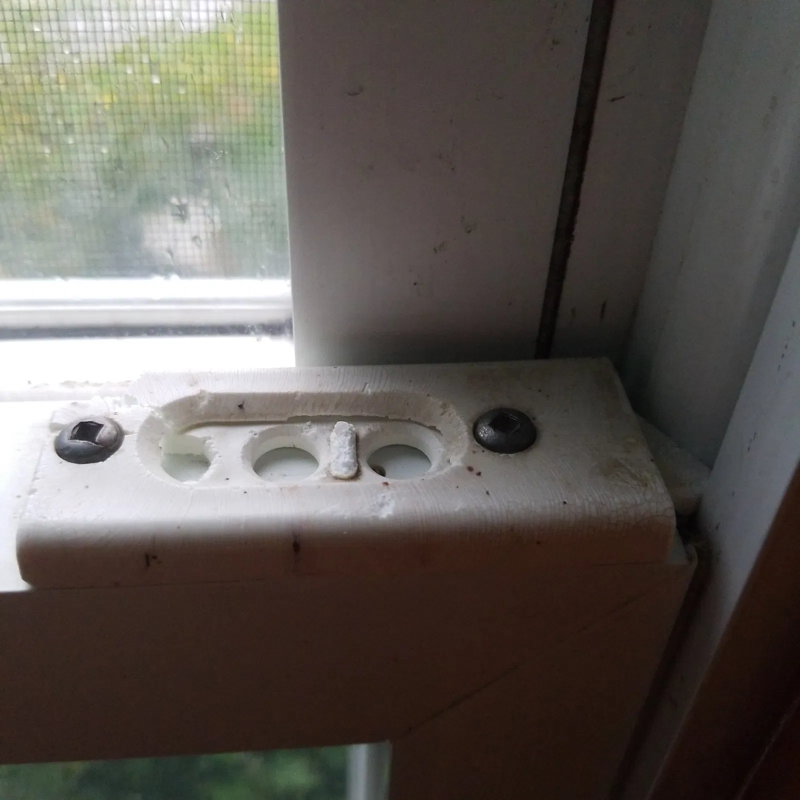 Sử dụng filament ASA để thay thế các chốt cửa sổ vì tính ổn định với UV của nó. Tái sử dụng các vít và lò xo từ chốt cũ.