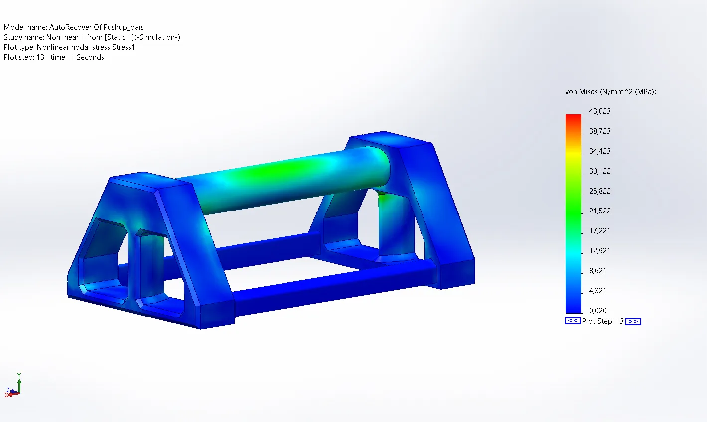 Kiểm tra FEA cho mỗi thanh đẩy 75 kg.