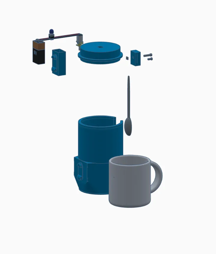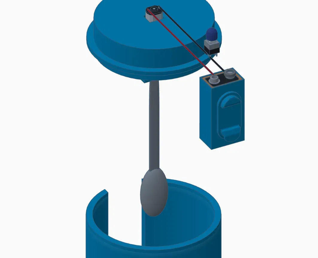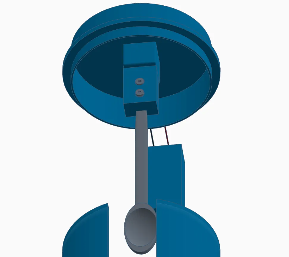Lấy mô hình 3D của nắp có trong các mô hình 3D cho in 3D :) và chèn động cơ Metal Gear DC vào đó. Sau đó kết nối pin và công tắc với động cơ theo hình ảnh ở trên. Để nắp sang một bên và lấy phần kết nối thìa và động cơ lại với nhau nếu bạn gặp vấn đề nhận diện mô hình, đây là tên được đặt trong các mô hình: spoon_hld.