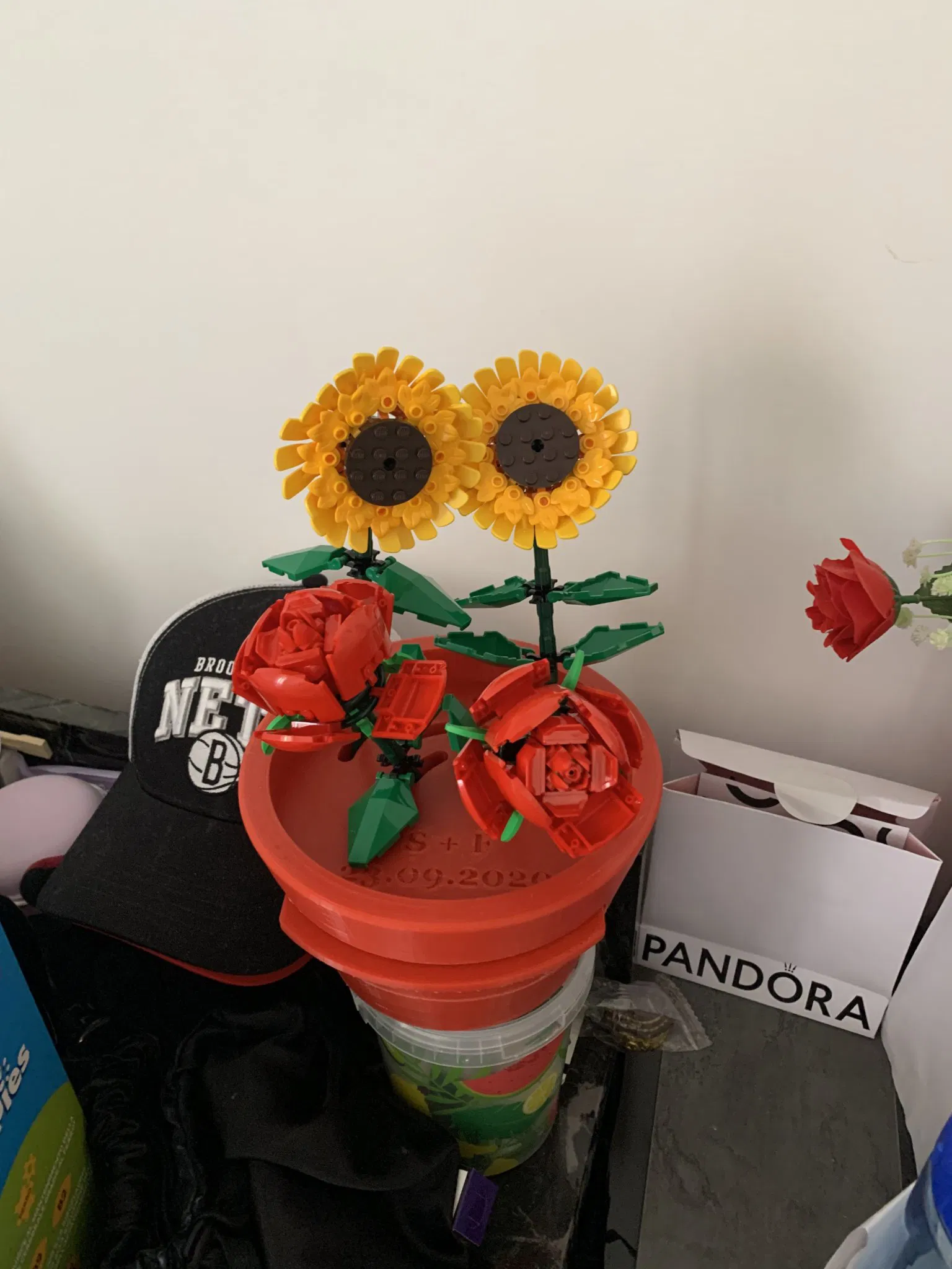 nồi hoa cho hoa lego với hộp đựng đồ trang sức
