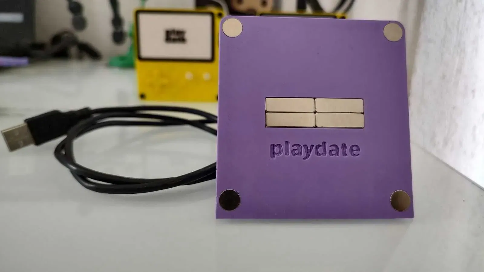 Một giá sạc từ tính cho Playdate. Nó sử dụng tám nam châm neodymium tròn 8mm x 1.5mm cho các góc (hai cái cho mỗi góc) và bốn nam châm hình chữ nhật 5.75mm x 19mm x 1.75mm cho trung tâm. Các nam châm được kết nối với một cáp sạc USB 2.0 tiêu chuẩn 5v (đỏ nối với nam châm trên cùng và đen nối với nam châm dưới cùng). Sau đó, sử dụng các nắp cáp được cung cấp (hình trụ) để ấn chặt các cáp vào vị trí của chúng. Để hoàn thành thiết lập, quấn cáp USB quanh phần “vòng tròn” trung tâm và hướng nó qua lỗ mở ở dưới. Cuối cùng, đóng giá bằng cách ấn nắp sau vào nó (snap-on). Giá có thể được in mà không cần hỗ trợ nhưng bạn cần thêm các điểm dừng ở lớp 10 (để thêm các nam châm trung tâm) và 16 (để thêm các nam châm góc). Nếu không, hãy thêm hỗ trợ cho các lỗ góc và trung tâm. Đế của giá rỗng để bạn có thể thêm một điểm dừng ở lớp 183 để thêm đồng xu/cát/đá nhỏ nhằm tăng trọng lượng cho giá. Ngoài máy chơi game Playdate, nó cũng có thể được sử dụng cho: - - In bằng PolyTerra Lavender Purple PLA.