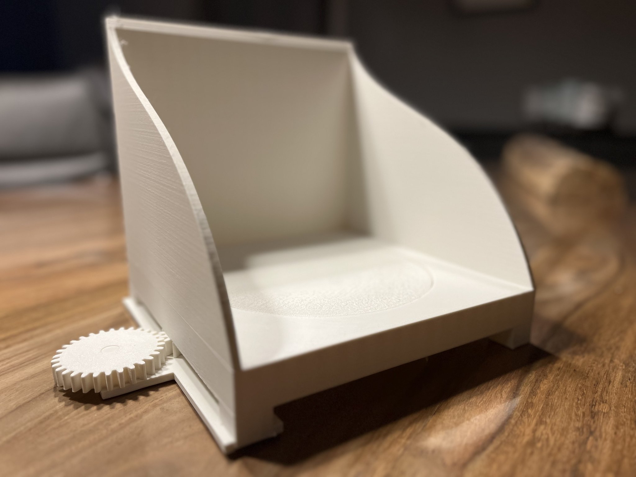 Động lực chính đằng sau thiết kế này là để tạo điều kiện cho quá trình phun sơn cho các mô hình in 3D trong khi ngăn chặn sơn vô tình chạm vào bề mặt làm việc. Trạm này cho phép xoay các đối tượng mà không cần tiếp xúc vật lý, nhờ vào đĩa xoay đi kèm.