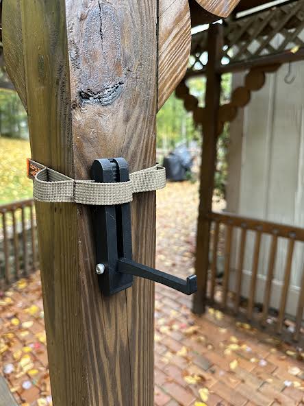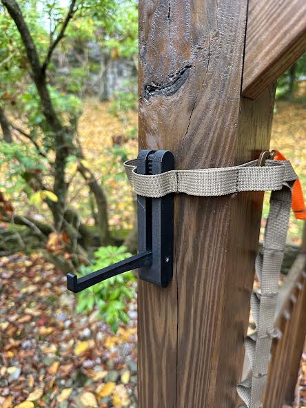 Một thiết bị có thể gập lại để cho phép treo cung trong khi săn bắn cung