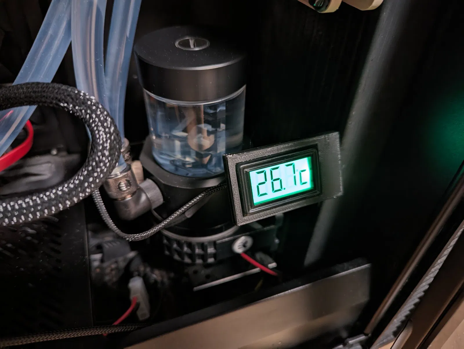 Giá đỡ được thiết kế để phù hợp với một vít vỏ máy tính tiêu chuẩn vào bất kỳ thứ gì bạn có thể tìm thấy (tôi đang sử dụng bộ tản nhiệt của mình). In bằng PETG với 30% độ đầy mà không cần hỗ trợ.