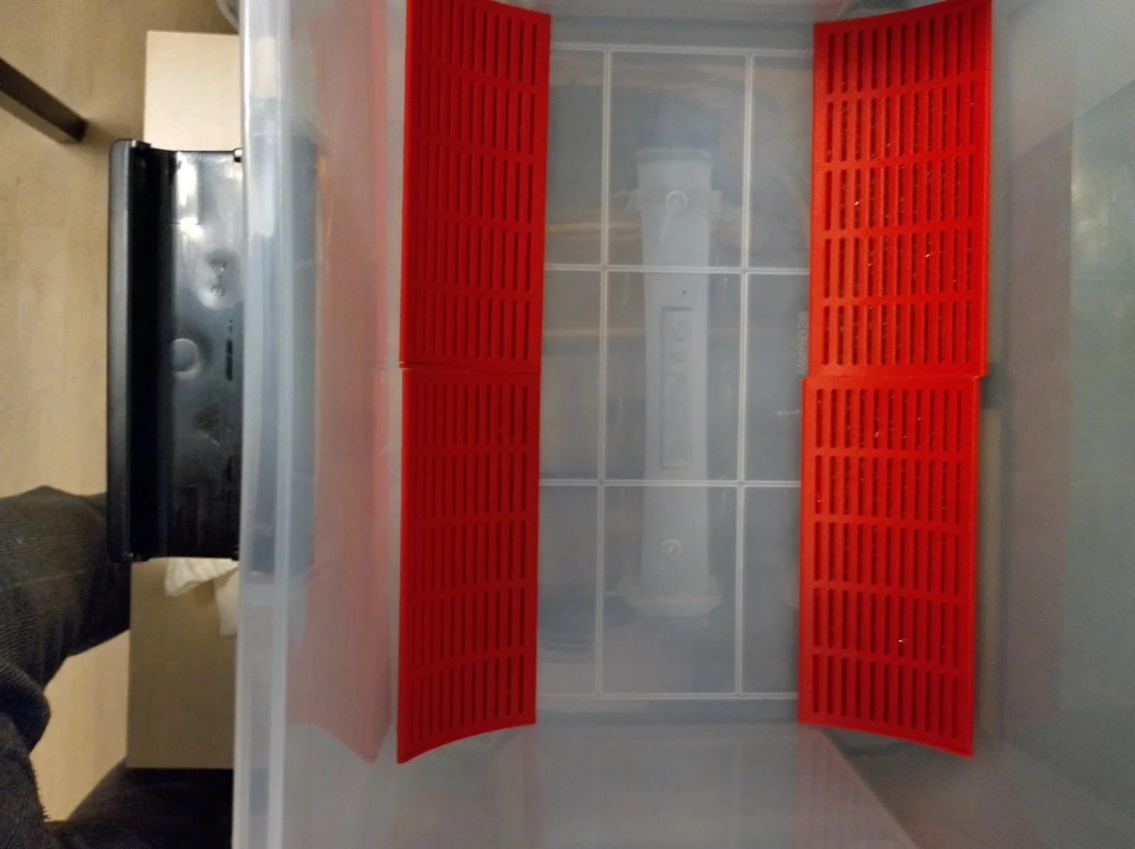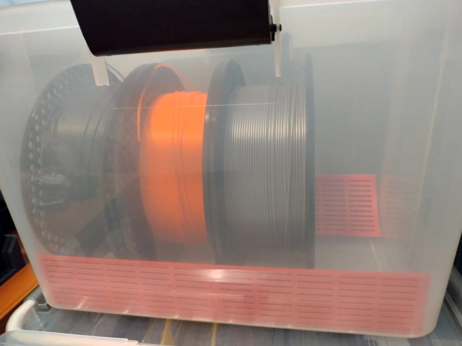 In nó đứng thẳng, cài đặt mặc định sẽ ổn. Tôi in những cái này bằng ASA để có thể làm khô hút ẩm trong chính hộp đó. Nó sử dụng một hệ thống nắp đậy đơn giản mà tôi thấy rất đáng tin cậy.