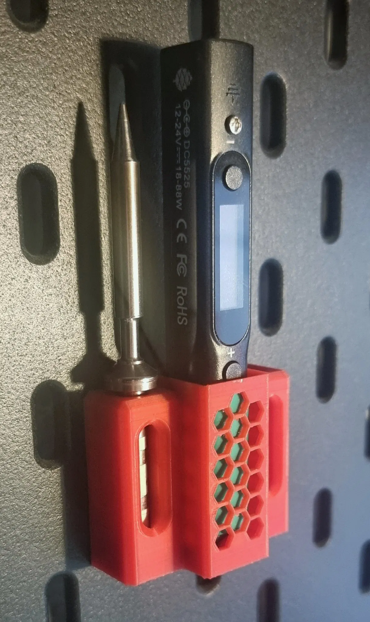 Đây là một mô hình có thể giữ cây hàn Pinecil của bạn trong một bố trí nhỏ gọn, với không gian lưu trữ bổ sung cho 2 đầu hàn. Nó có thiết kế trực quan đẹp mắt có thể nhanh chóng gắn vào bảng skadis của Ikea với bất kỳ kích thước nào.