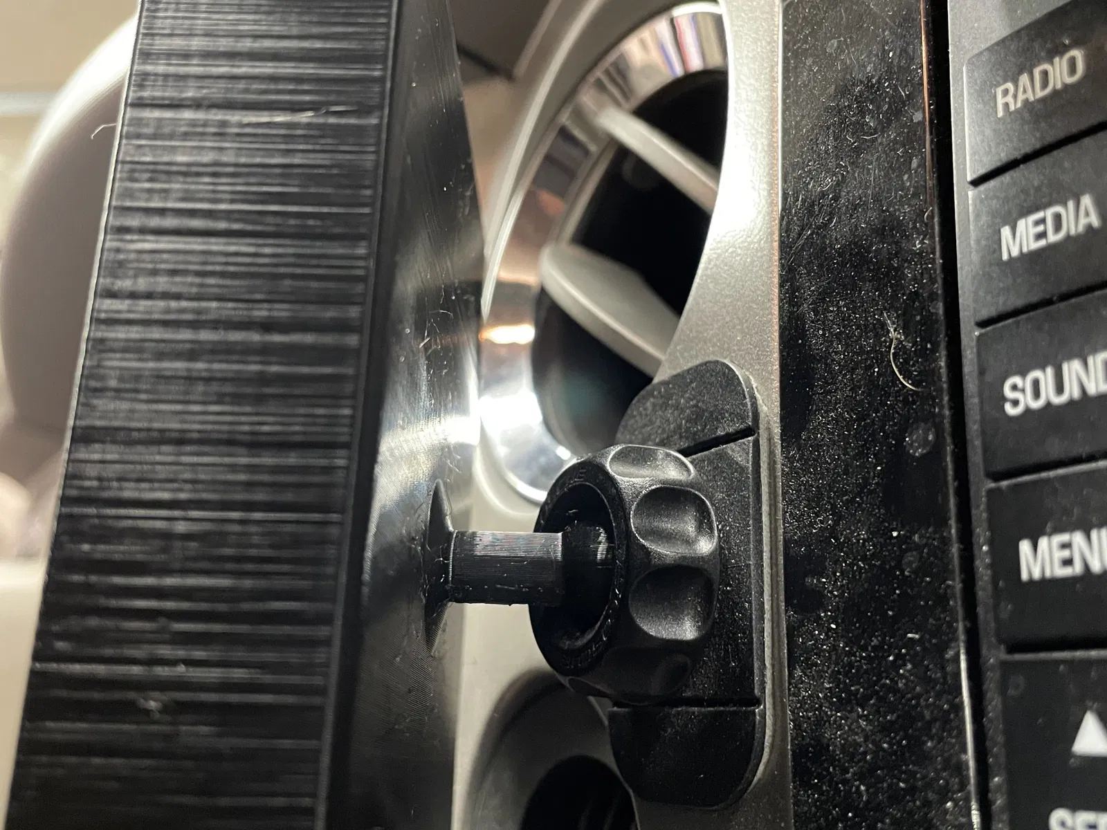 Được sử dụng để gắn một cái nôi truyền thống vào ổ bi của Giá đỡ điện thoại ô tô từ Scosche MagicMount. Vỏ của vợ tôi không cho phép chúng tôi đặt một tấm kim loại lên đó để sử dụng giá đỡ truyền thống, vì vậy tôi đã làm cái này để hoạt động như một cái nôi thay thế. Cái mà tôi làm cho vợ tôi, tôi đã nhúng thông điệp "Tôi yêu bạn" vào, nhưng phiên bản đã xuất bản thì không có điều đó.