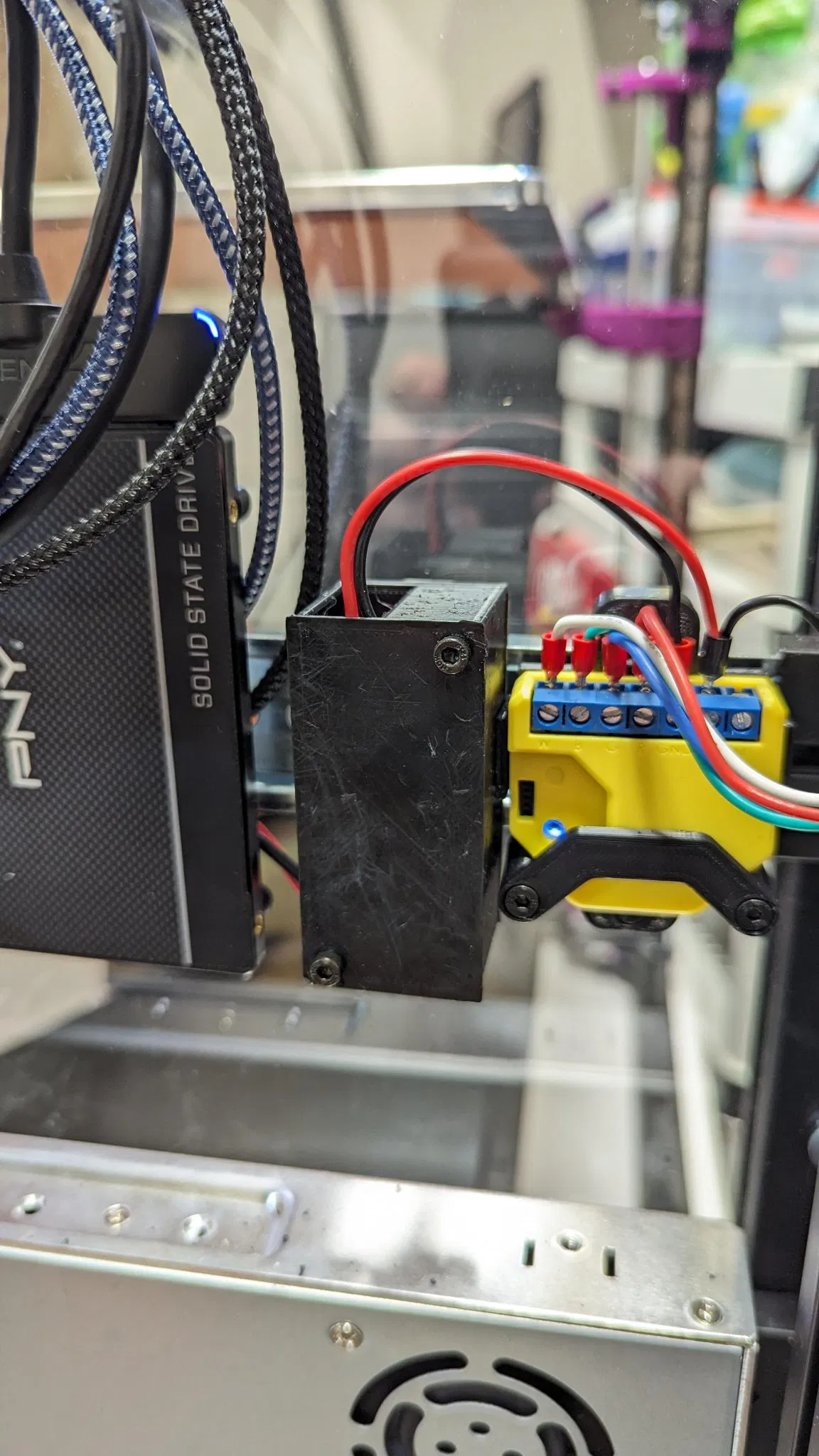 Muốn một giá đỡ/bao bọc đẹp cho bộ chuyển đổi buck của tôi. Tôi sử dụng thanh DIN trên VCore3.1 500 của mình, vì vậy tôi đã thiết kế nó xung quanh điều đó. Tôi đang sử dụng giá đỡ thanh DIN của MMullerPhoto, và tôi rất khuyên bạn nên sử dụng nó cho tất cả các nhu cầu gắn DIN của bạn. Sử dụng vít M3 và các chèn nhiệt.