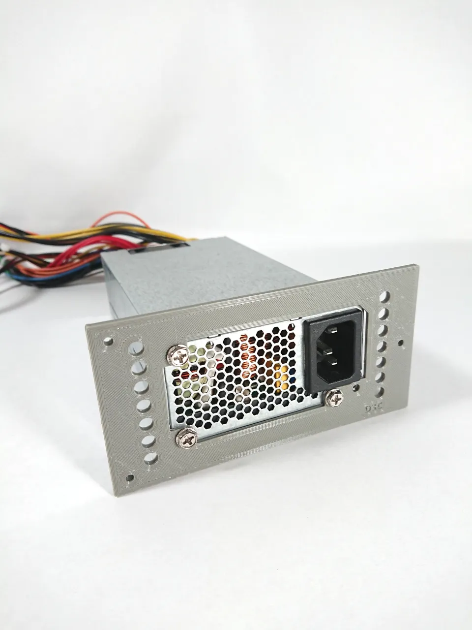 Bảng chuyển đổi nguồn máy tính đơn giản (PSU) để thay đổi từ gắn SFX sang tương thích Flex-ATX, phù hợp với PSU máy chủ 1U. Chọn bảng dày 3mm bình thường, hoặc mô hình "T4" mạnh hơn (4mm). Bảo đảm nó bằng cách sử dụng vít case máy tính tiêu chuẩn (#6-32 UNC). Thêm hỗ trợ (ví dụ: dây buộc), nếu cần.