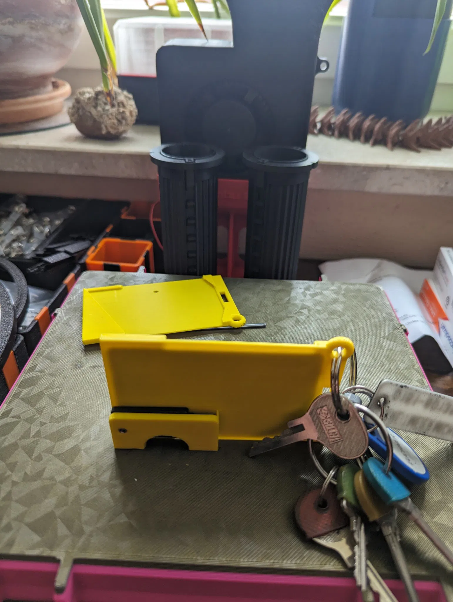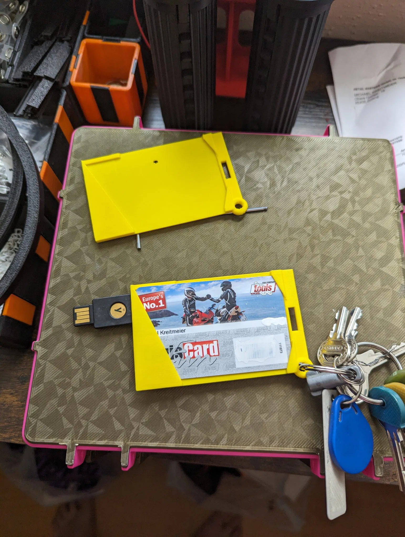 Tôi đã thiết kế một hộp thẻ tối giản cho móc khóa. Nó có thể được in mà không cần hỗ trợ. Một thiết kế với một giá đỡ Yubikey bổ sung cũng có sẵn.