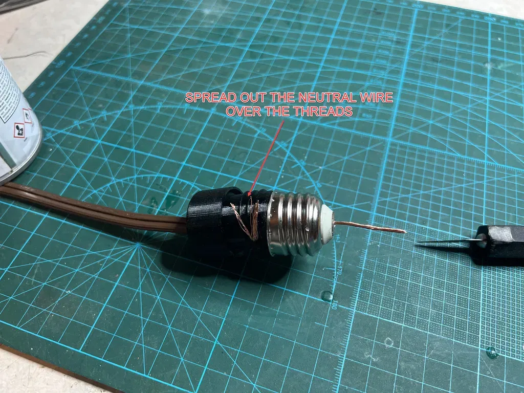 Nên tui làm cái adapter này, vặn vô đó để tạo thành một cái adapter đơn giản để lấy điện từ cái đui đèn thông thường.