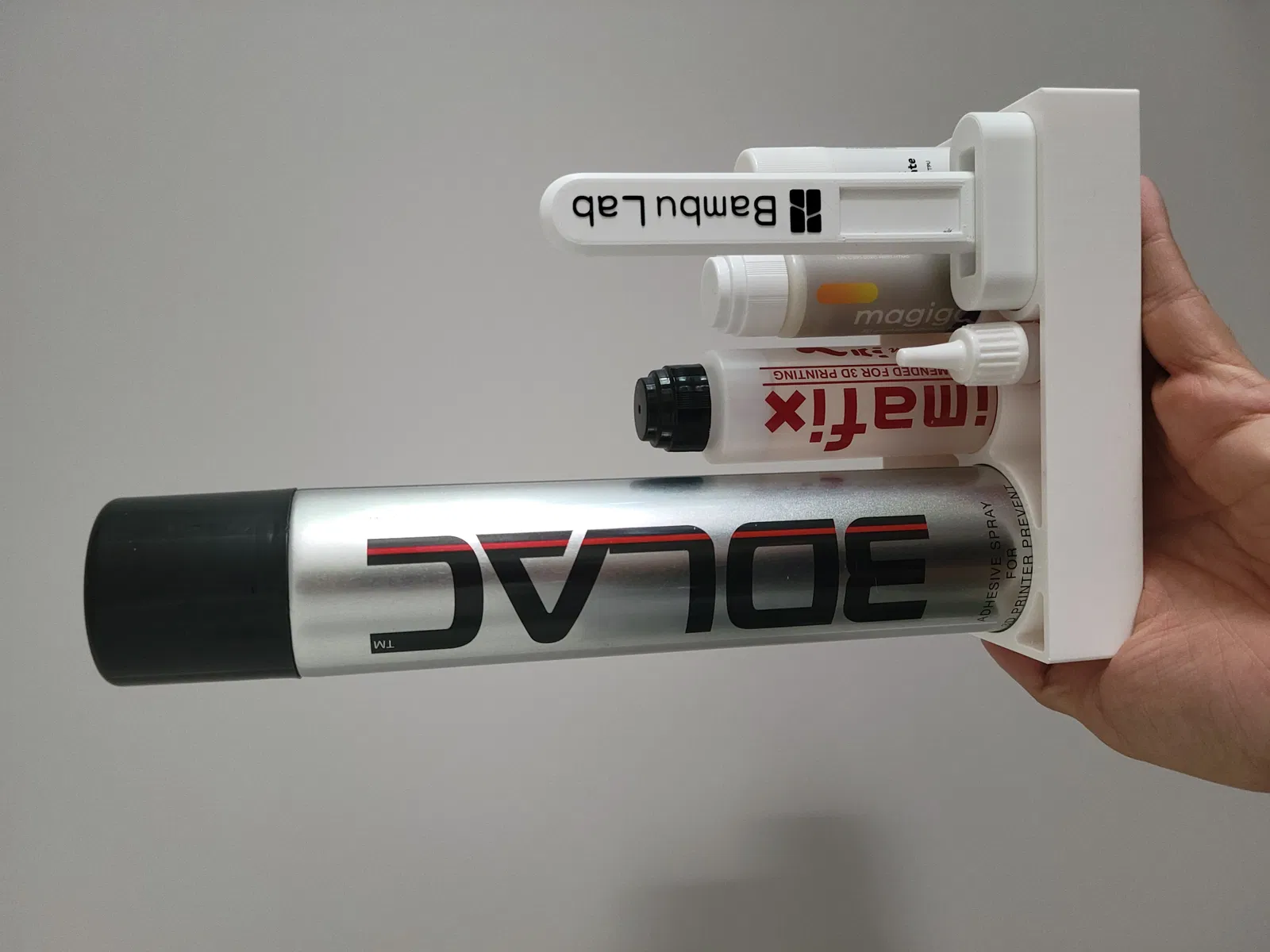 Một giá đỡ nhỏ cho các loại keo khác nhau và dụng cụ cạo Bambu Lab